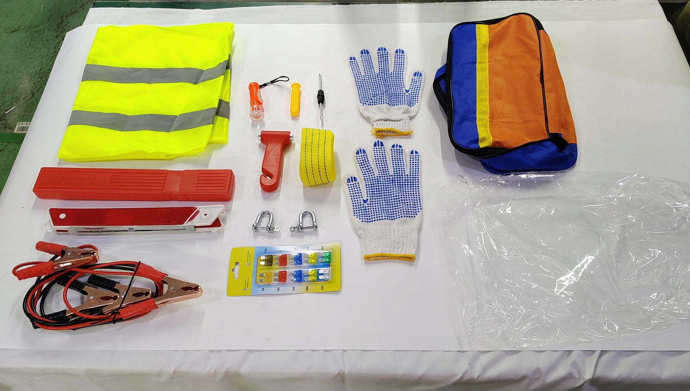 - много -функциональный аварийный инструмент - аварийный комплект автомобиля представляет собой набор из 10 в 1, который содержит стартовые кабели, буксирное веревку, предупреждающий треугольник, предохранитель, защитный молот, аварийный свет, отвертка и перчатки, отражающий жилет безопасности и мешок для хранения. Прикрепленная сумка для хранения позволяет легко хранить экстренные аксессуары, поэтому их нельзя легко потеряться. Он маленький и компактный, поэтому его можно хранить в любом месте ствола, на заднем сиденье или в хранении шин. Это идеальный и практичный подарок для семьи и друзей.