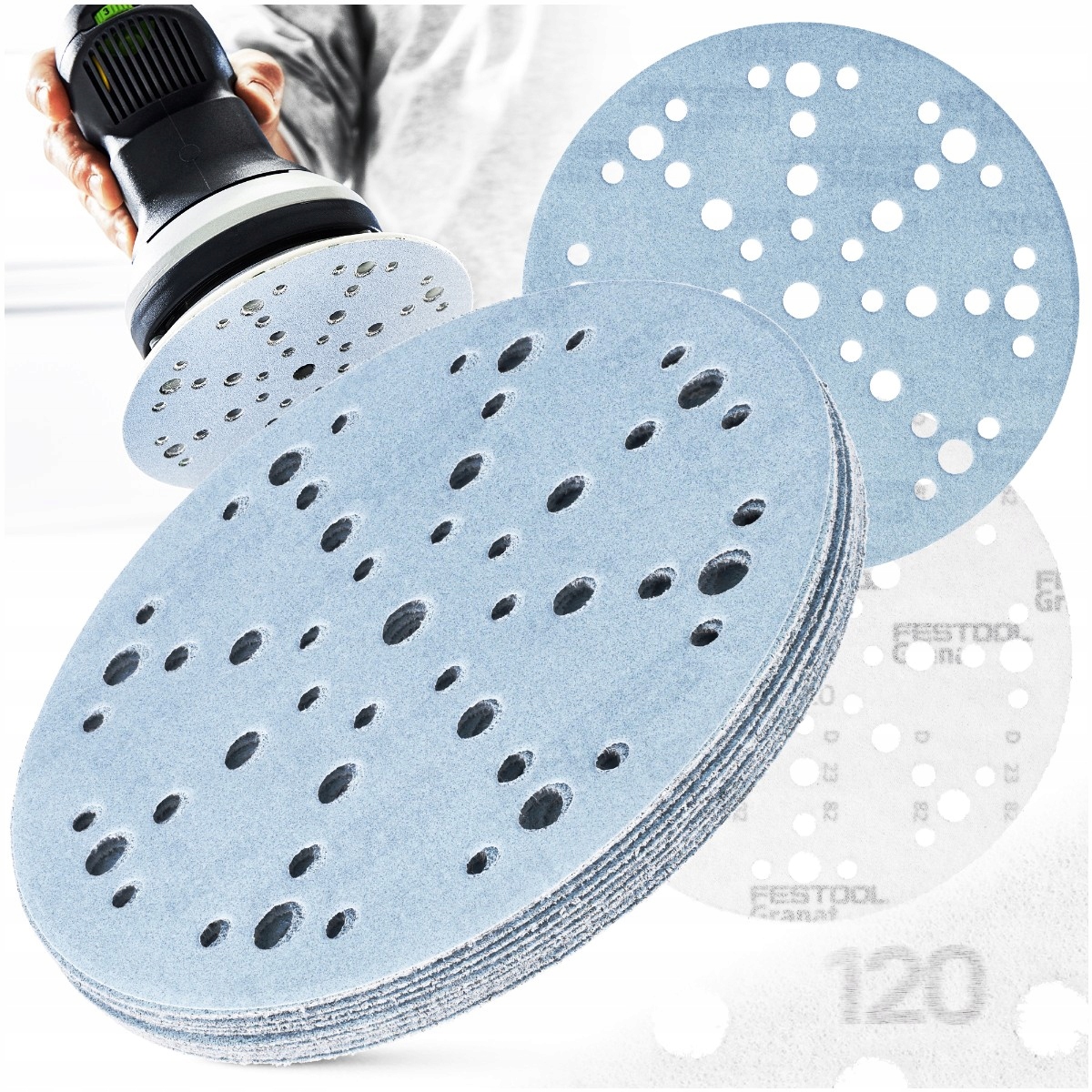 10 наждачной бумаги на липучке для шлифовальной машины FESTOOL, ТЕМНО-СИНИЕ ДИСКИ 150 мм P120