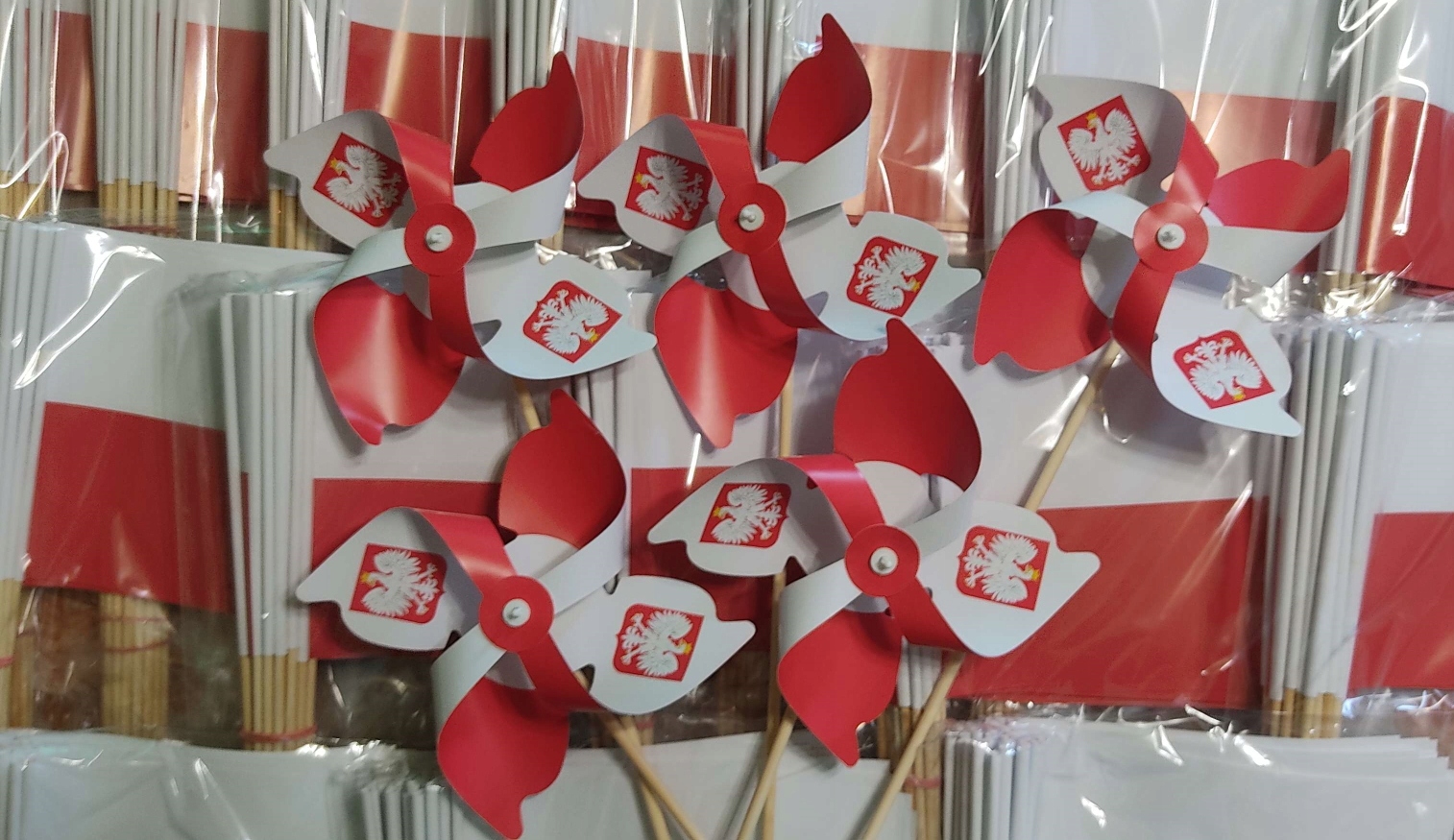 Вертушки в национальных цветах Польши с гербом Польши на белых крыльях. Наш дизайн основан на официальных цветах национальных цветов и узоре польского герба.