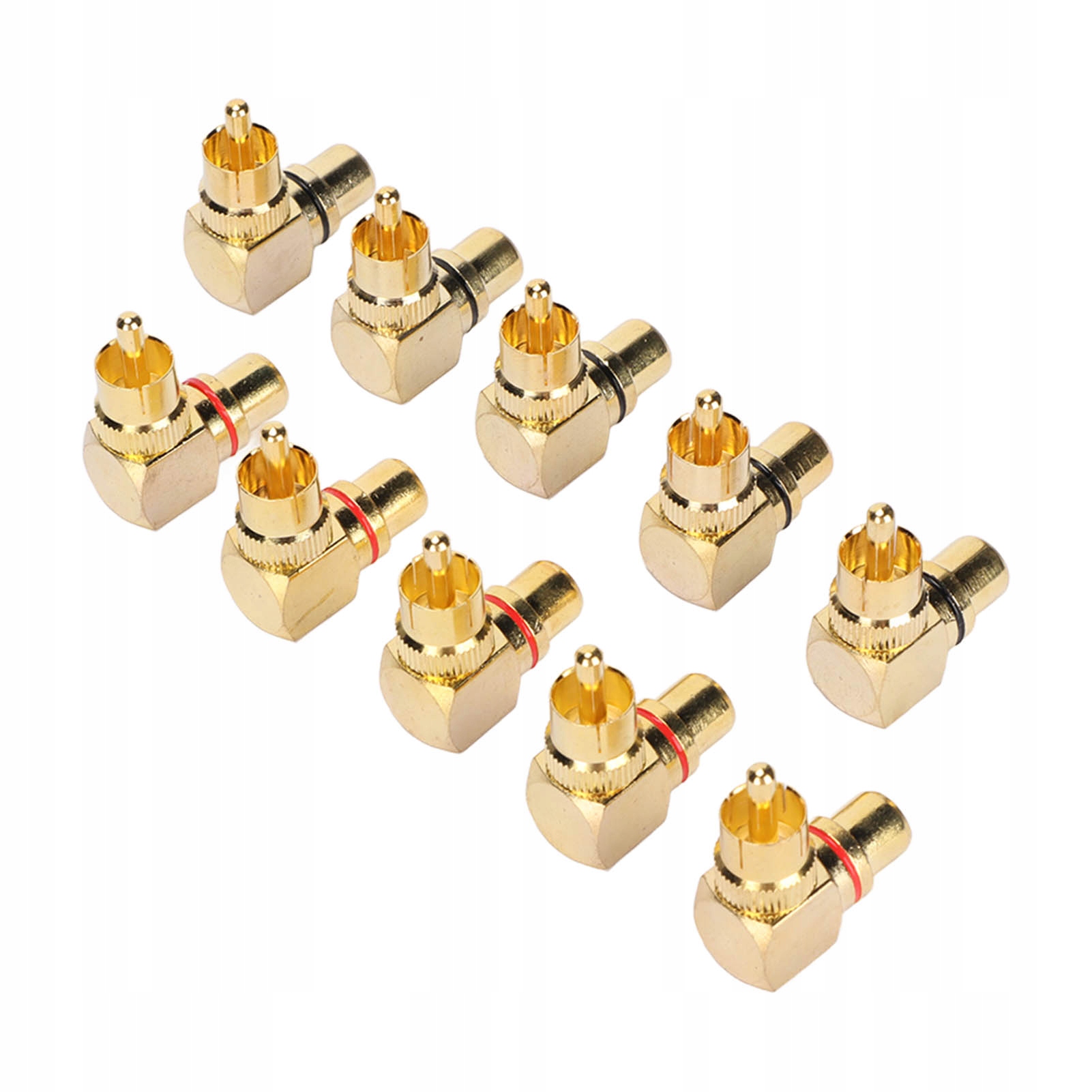 10 шт. Адаптер мужского угла для женского золота, начисленного на 90 градусов разъема адаптера RCA Тип L