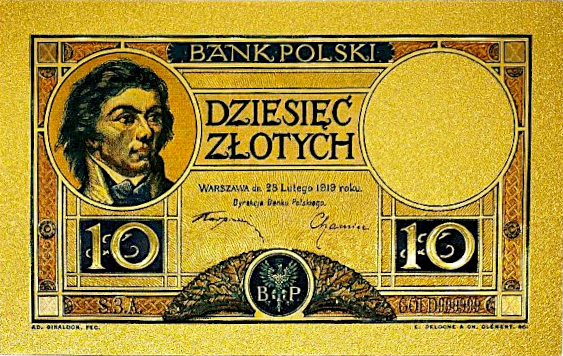 10 Zlotys 1919 Fancy Collector's Banknote с ПВХ h1>