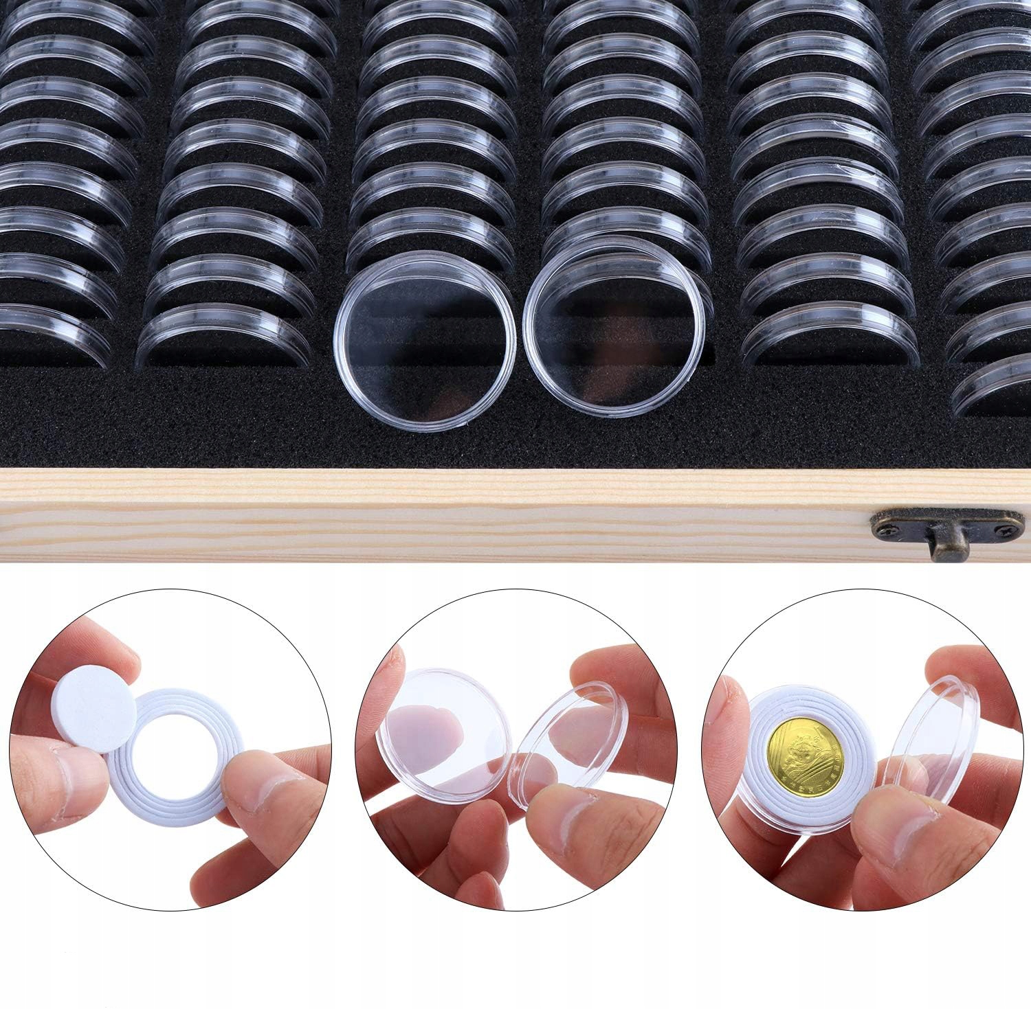 ЯЩИК ДЛЯ ХРАНЕНИЯ КОЛЛЕКЦИИ МОНЕТ: Размер ящика для монет составляет прибл. 280 x 190 x 45 мм, изготовлены из высококачественной сосновой древесины, вмещают 100 пластиковых капсул для монет, прозрачные капсулы для монет облегчают хранение, просмотр и обмен монет. Деревянная монетница практична и долговечна, отлично подходит для защиты капсул для монет, поддержания их в чистоте и порядке.
