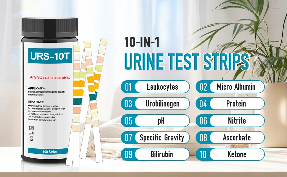 - Вы можете проверить свое здоровье дома, полосы тестирования мочи 10 в 1 являются обязательным набором для контроля за здоровьем дома в области кетогенной диеты, инфекции мочевыводящих путей и других параметров.