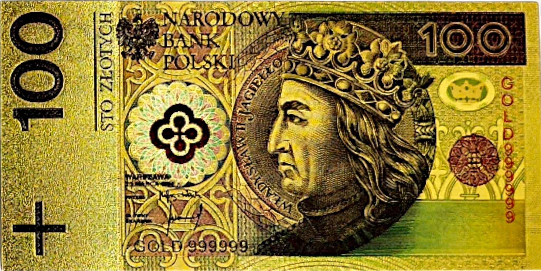 100 злотих WŁADYSŁAW II JAGIEŁO Прекрасна унікальна позолочена ПВХ банкнота