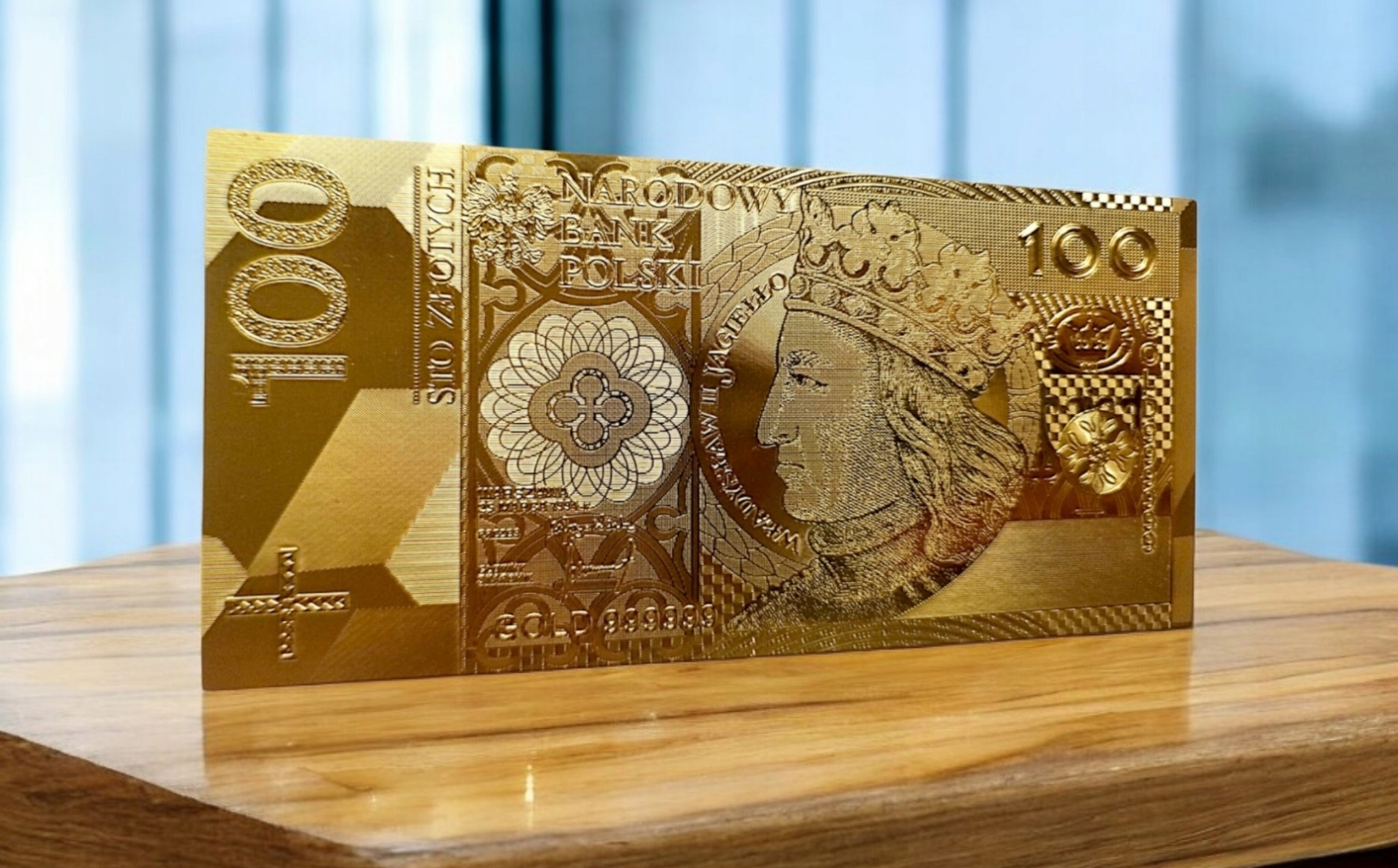 Красивая коллекционная банкнота номиналом 100 злотых, ЗОЛОТАЯ ВЕРСИЯ.