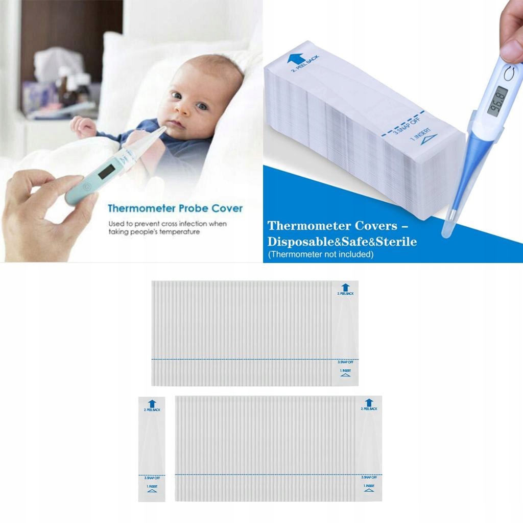 100 чехлов для термометров, изготовленных из полиэтилена высочайшего качества, индивидуально запечатанные крышки, чтобы каждый мог использовать стерильный и чистый термометр, особенно если термометром пользуется много людей