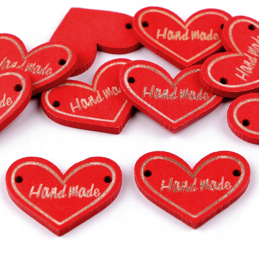 10x ДЕРЕВ'ЯНА декоративна етикетка РУЧНОЇ РОБОТИ 23x30 мм ЧЕРВОНЕ СЕРЦЕ