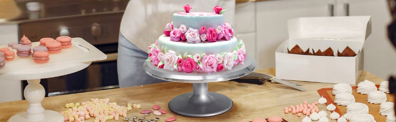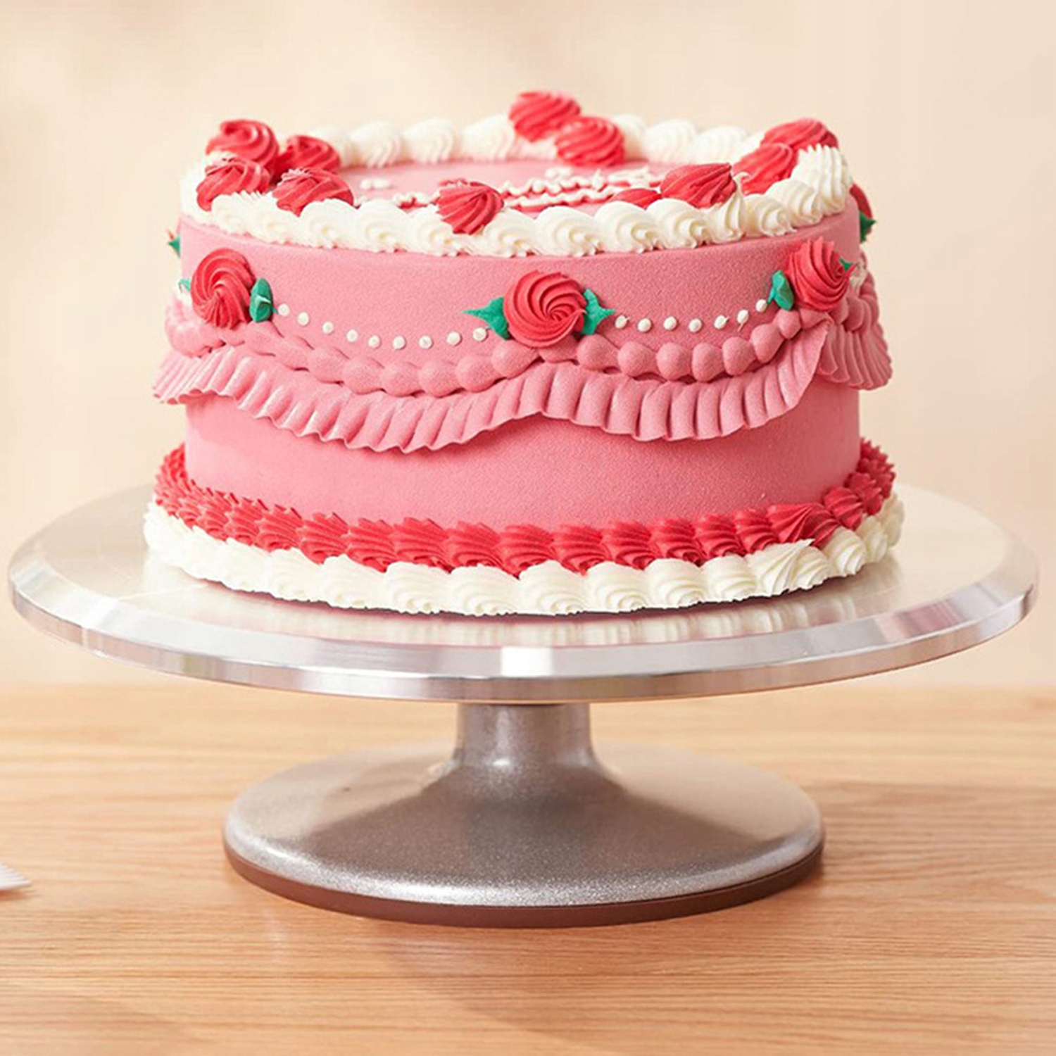 Сильная и долговечная: вращающаяся пластина для украшения тортов изготовлен из экологически чистого алюминия, который соответствует стандартам гигиены пищевых продуктов