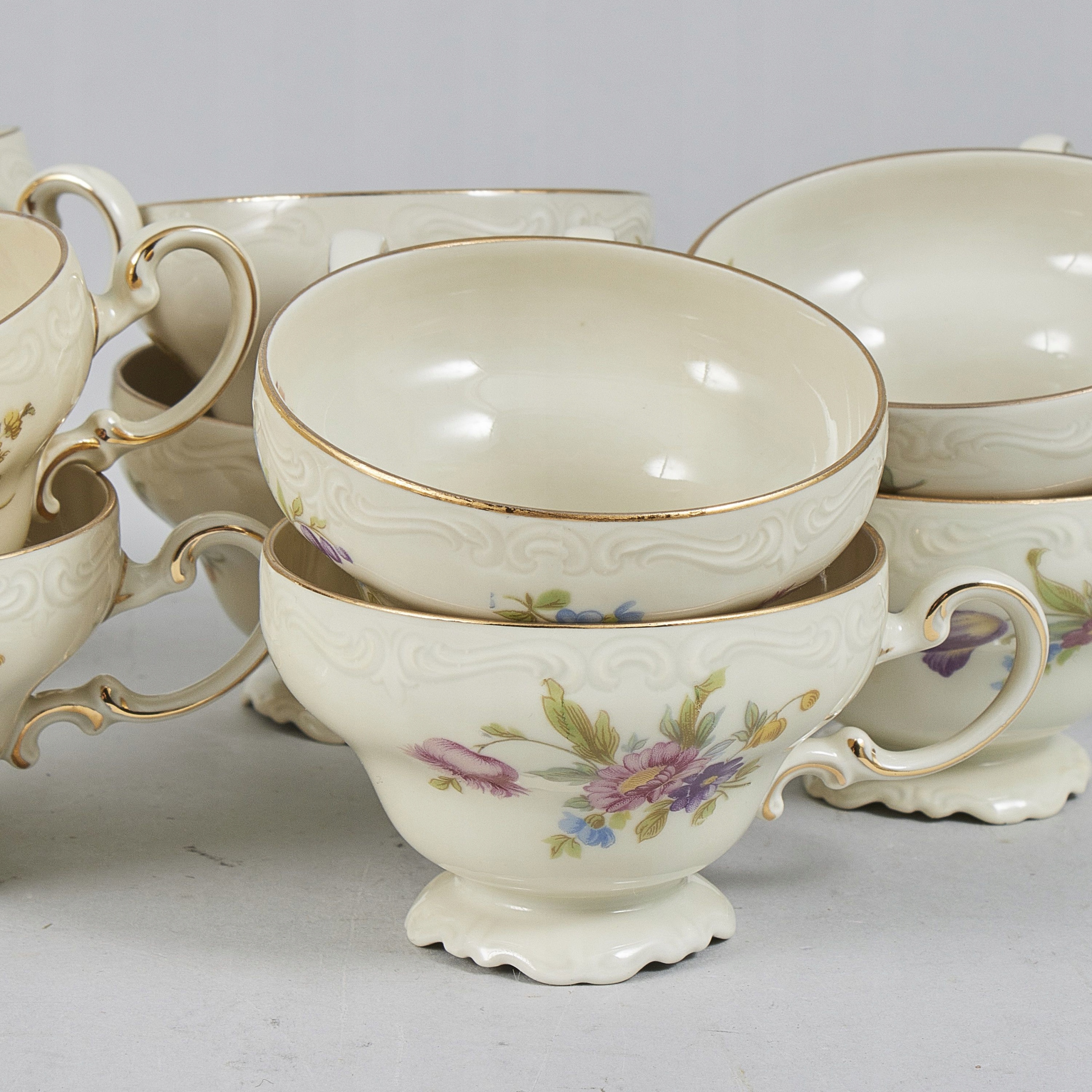12 чашек Розенталь Помпадур с выцветшими цветами