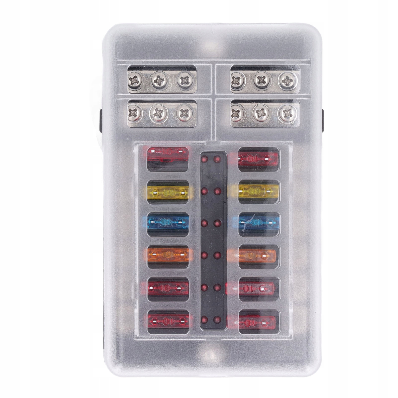 - Тип изделия: 12-контактный блок предохранителей (12 входов, 12 выходов).