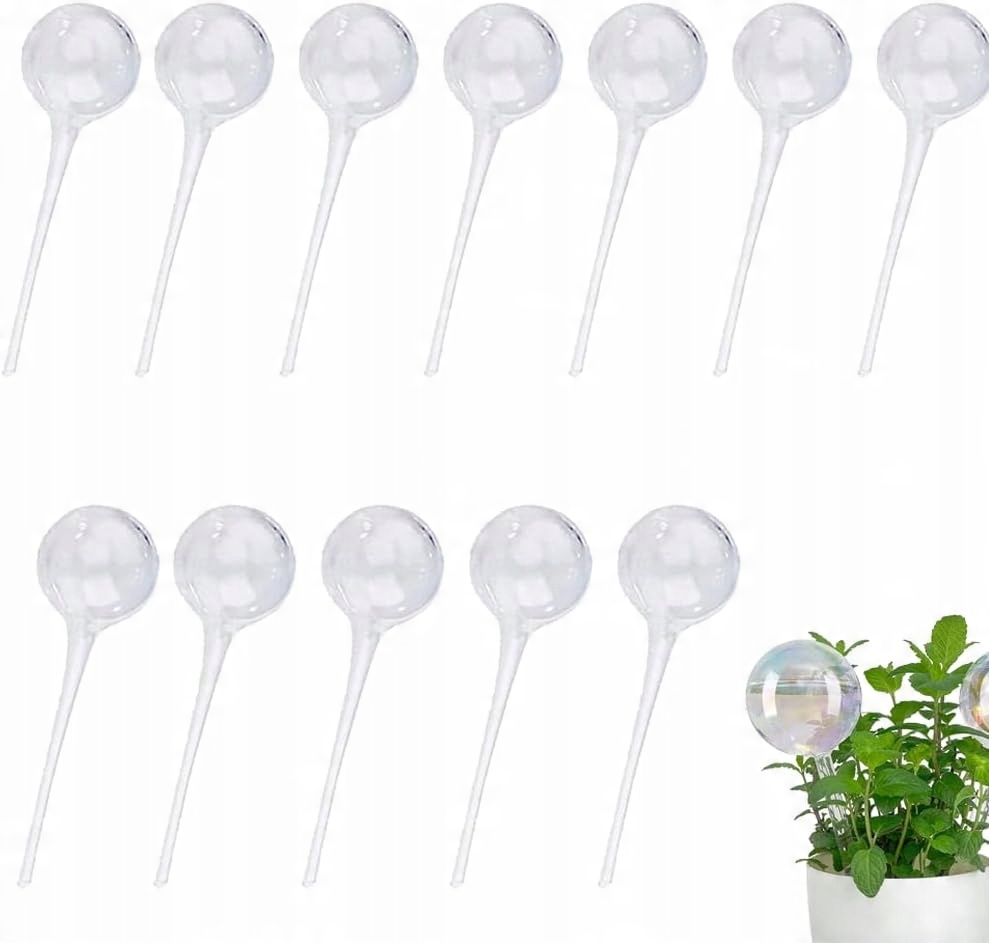 Вы получите 12 автоматических поливочных шариков для оросительных устройств. Размеры: примерно 13 см х 5 см. Самополивной лук медленно выделяет в почву нужное количество воды, что очень подходит для выращивания цветов, травы и других растений.