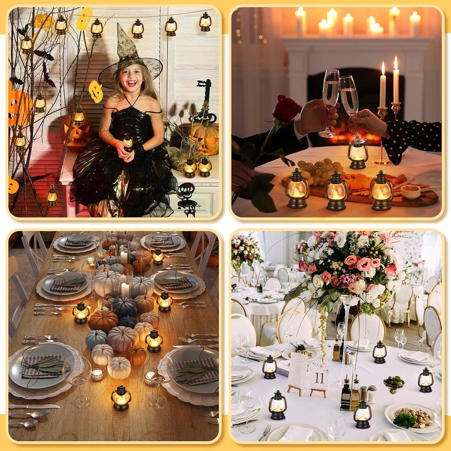 12 упаковок мини-декоративных фонариков, антикварных подвесных светильников для Хэллоуина