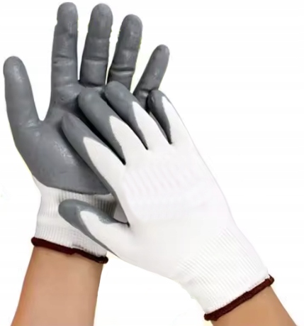 Перчатки рабочие защитные из белого полиэфирного трикотажа с покрытием из серого полиуретана, бесшовные, отделанные манжетой ARHEM NITRO - 12 PAR
