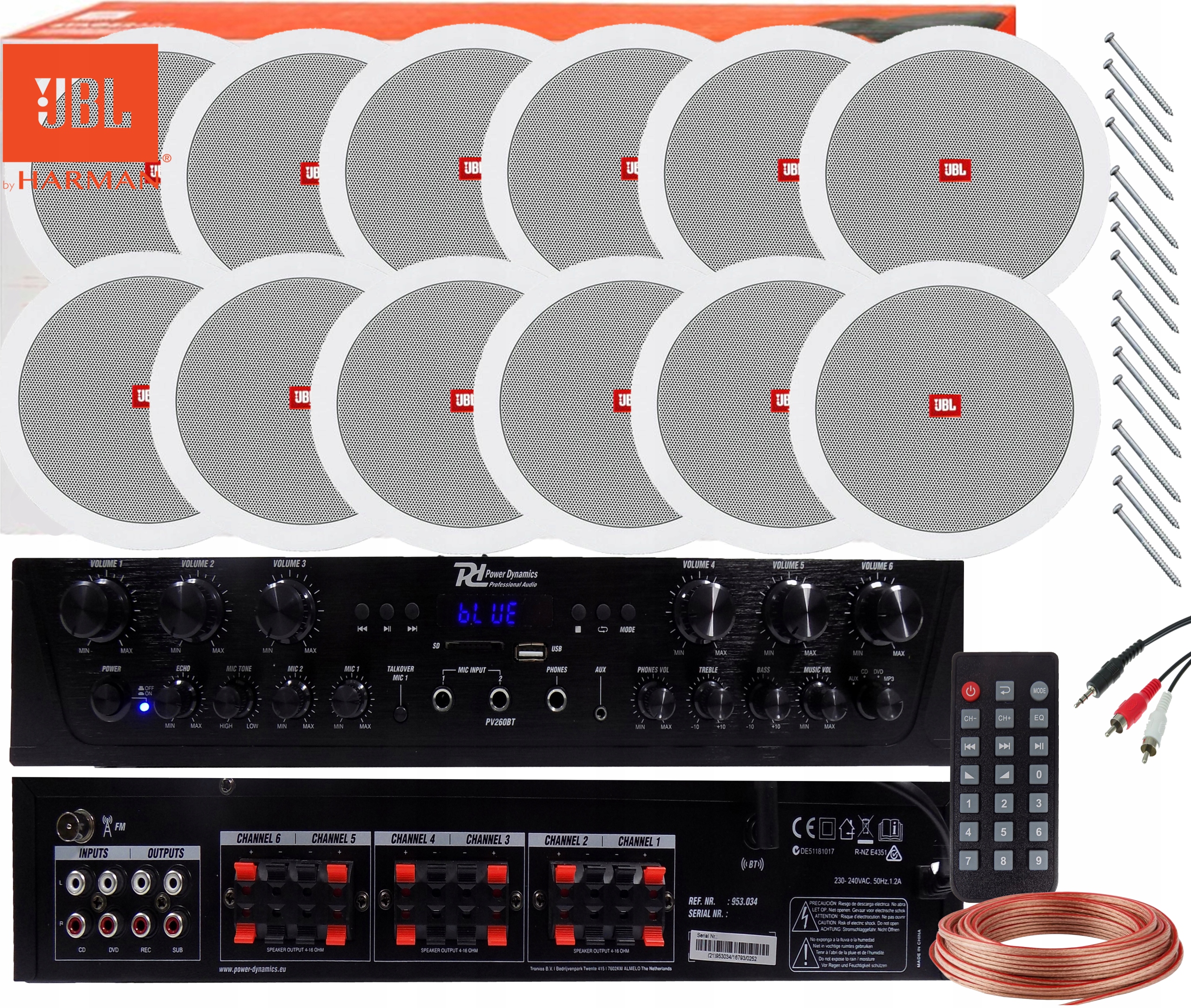 12× Стельовий динамік JBL Stage 2 624 білий + Підсилювач Power Dynamics PV260BT