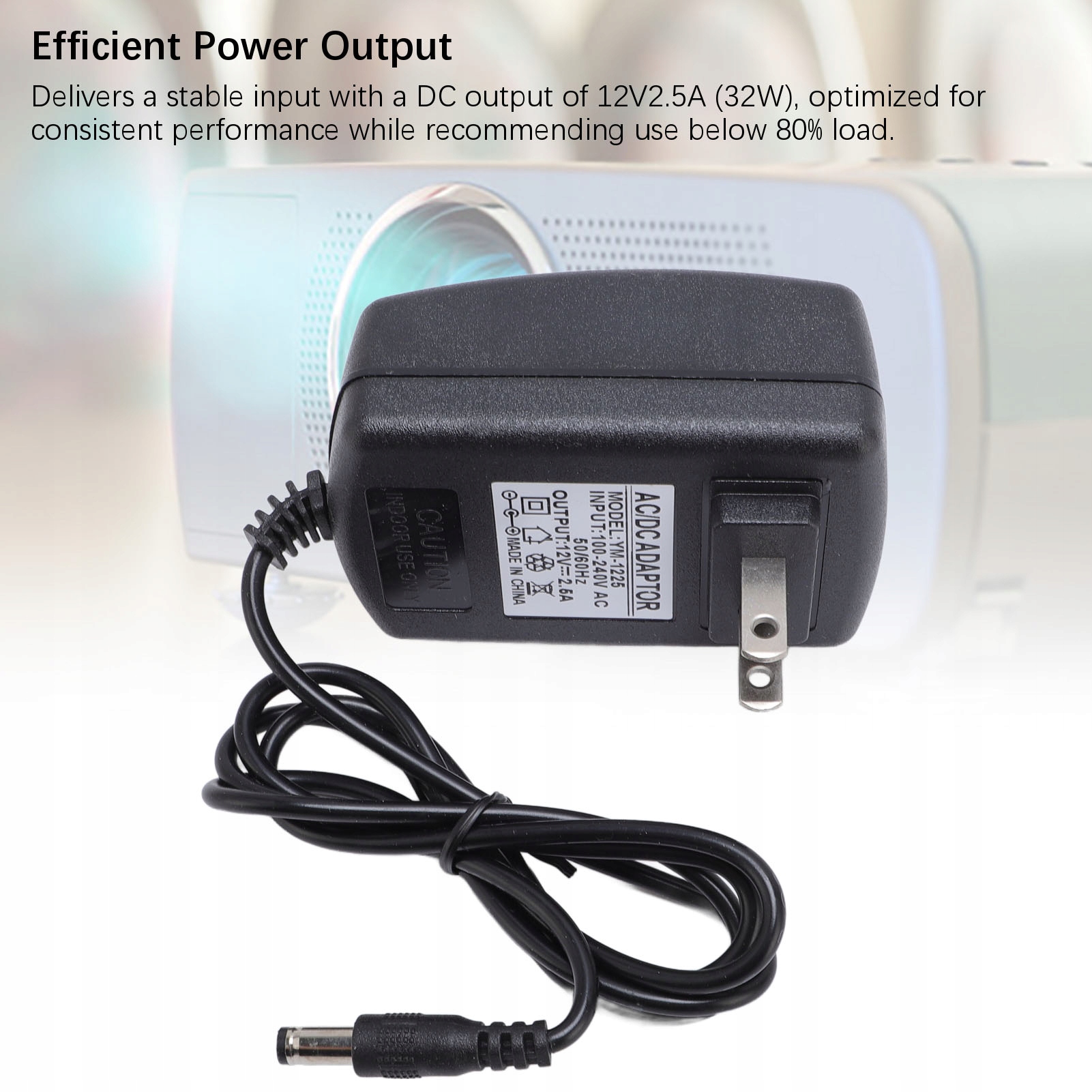 3. Эффективная выходная мощность: обеспечивает стабильный вход с выходом DC 12V2.5a (32 Вт), оптимизированный для постоянной производительности, рекомендуя использовать ниже 80% нагрузки.