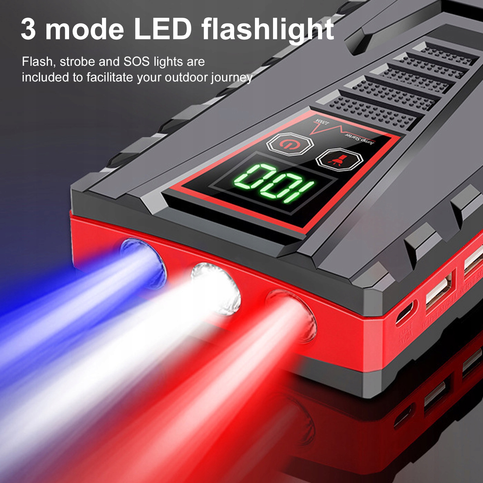 4. Многофункциональность: это устройство можно использовать в качестве аварийного источника питания, портативного блока питания и светодиодного фонарика с 3 режимами. Стартер на литиевой батарее — ваш надежный спутник в путешествии, подготовивший вас к любым приключениям.
