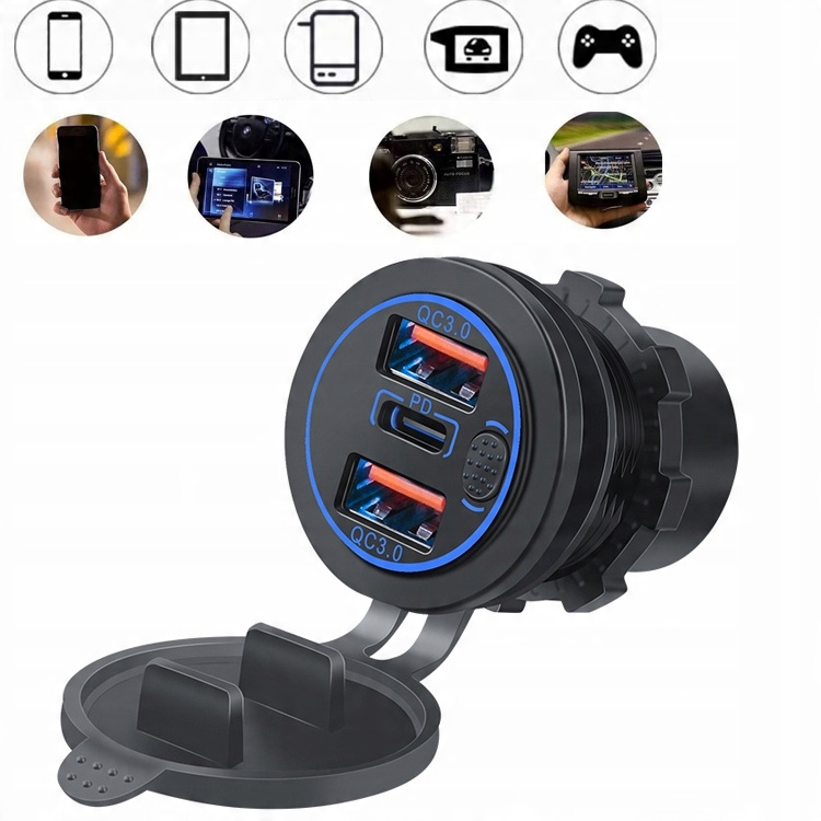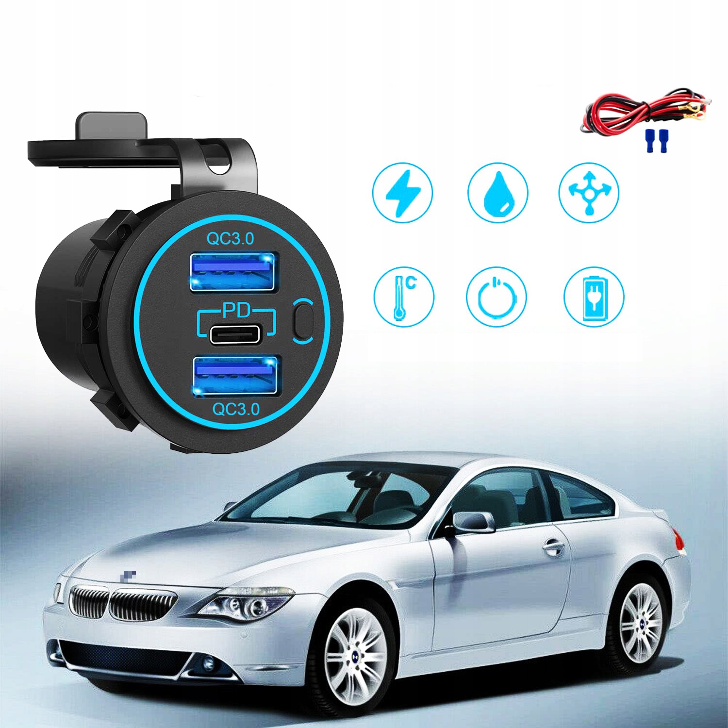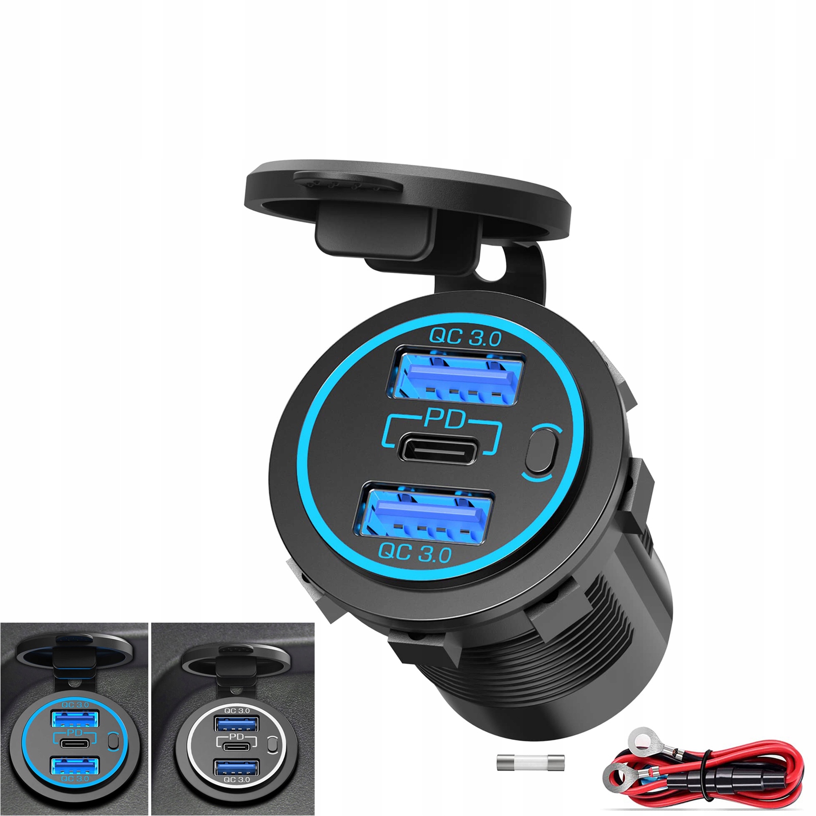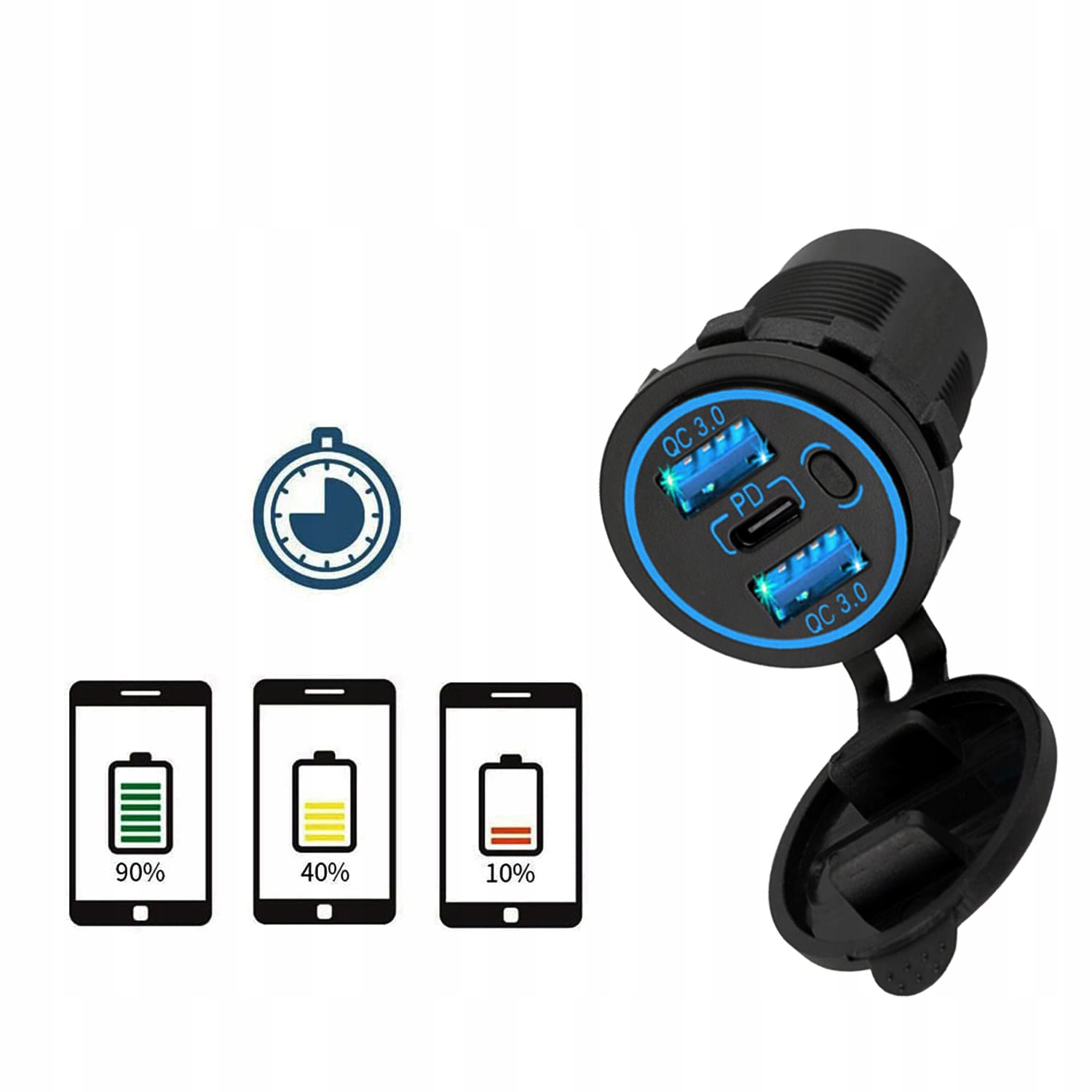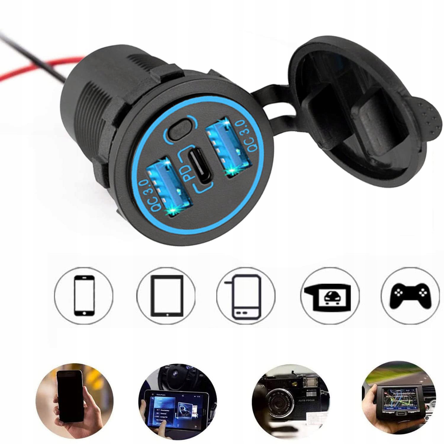 Multipt USB 12 V Cocket имеет два порта USB QC3.0 с 18 Вт и USB-C PD3.0 с 20 веком.