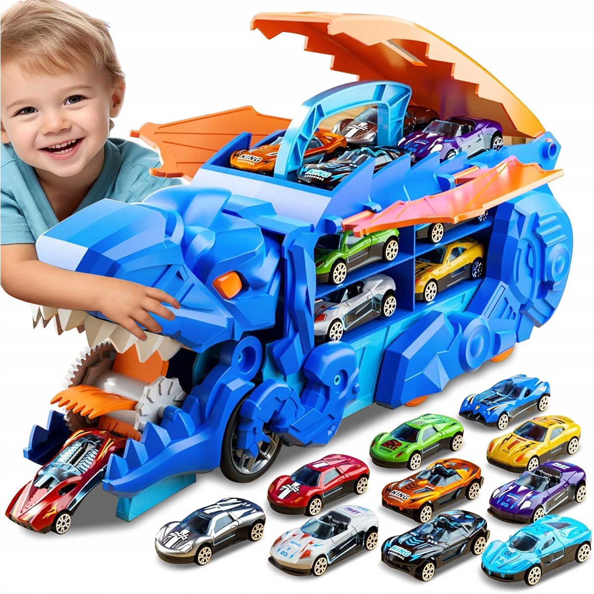 13IN1 Мега -динозавр гоночных треков Transporter + 12 CAR SET
