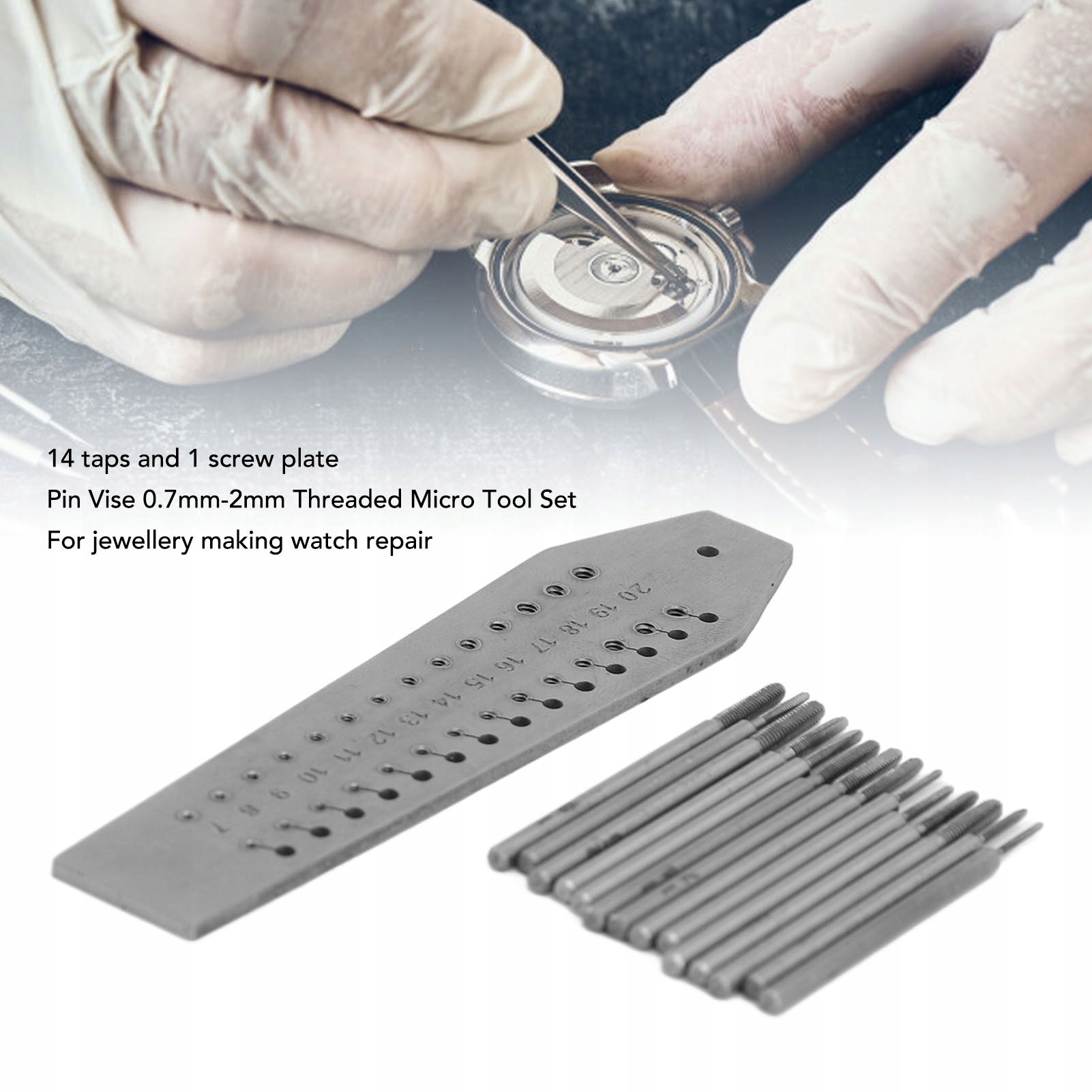 1. Набор миниатюрных нок и матриц: миниатюрные постукивания и матрицы, установленные с 14 кранами и 1 винт, 0,7 мм-2 мм резьба миниатюрного набора инструментов, удовлетворяя широкий спектр миниатюрных потребностей нити, что делает его невозмутимым инструментом для сложной и подробной работы.