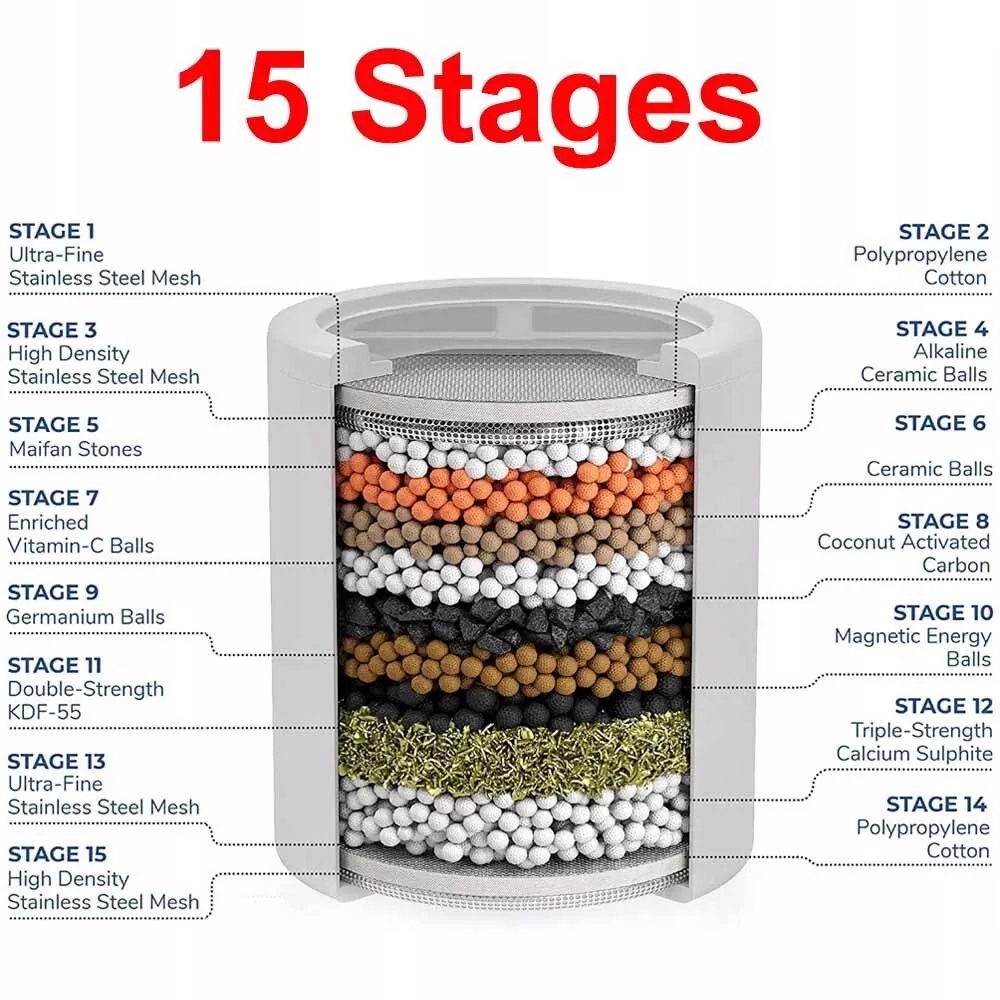 15-шарова фільтрація, 10-ступеневий фільтр для очищення води з душовою насадкою