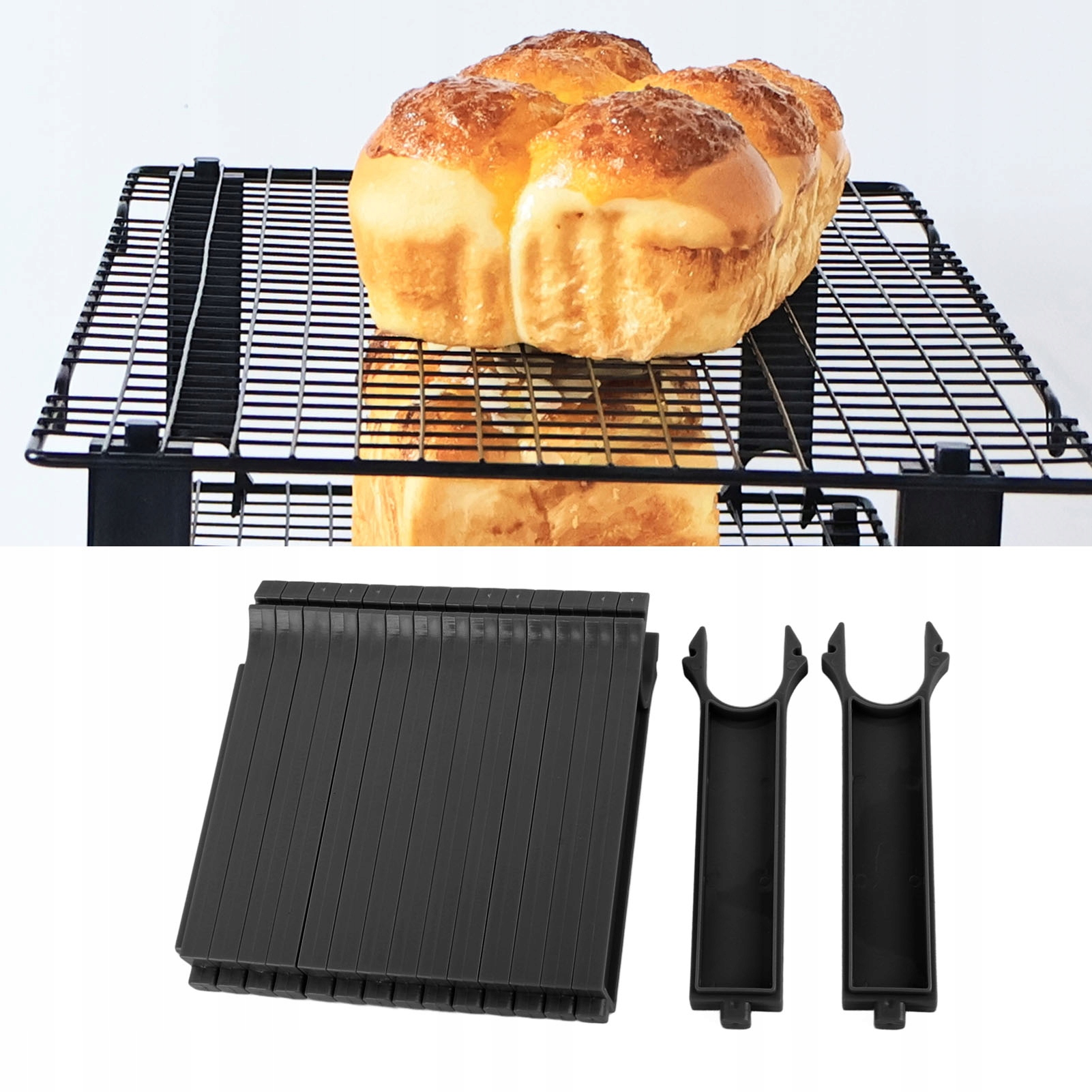 4. Простые в использовании: эти стеки для выпечки просты в использовании, просто прикрепите их на сторону пути, чтобы легко организовать множество лотков, помогая достичь чистой кухни и эффективного хранения.