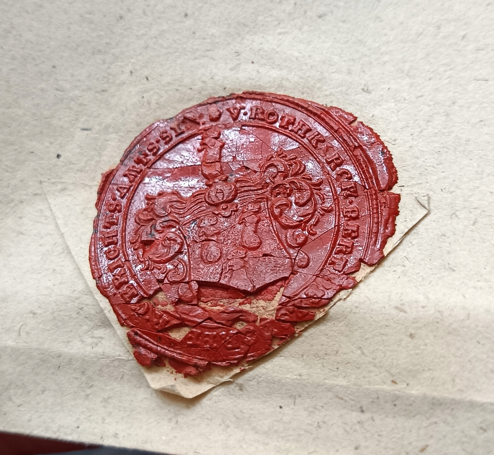 Поврежденная печать метки - это придворная печать фон Роткирхоу - с их гербами. Для сравнения, мы показываем их герб из Википедии.