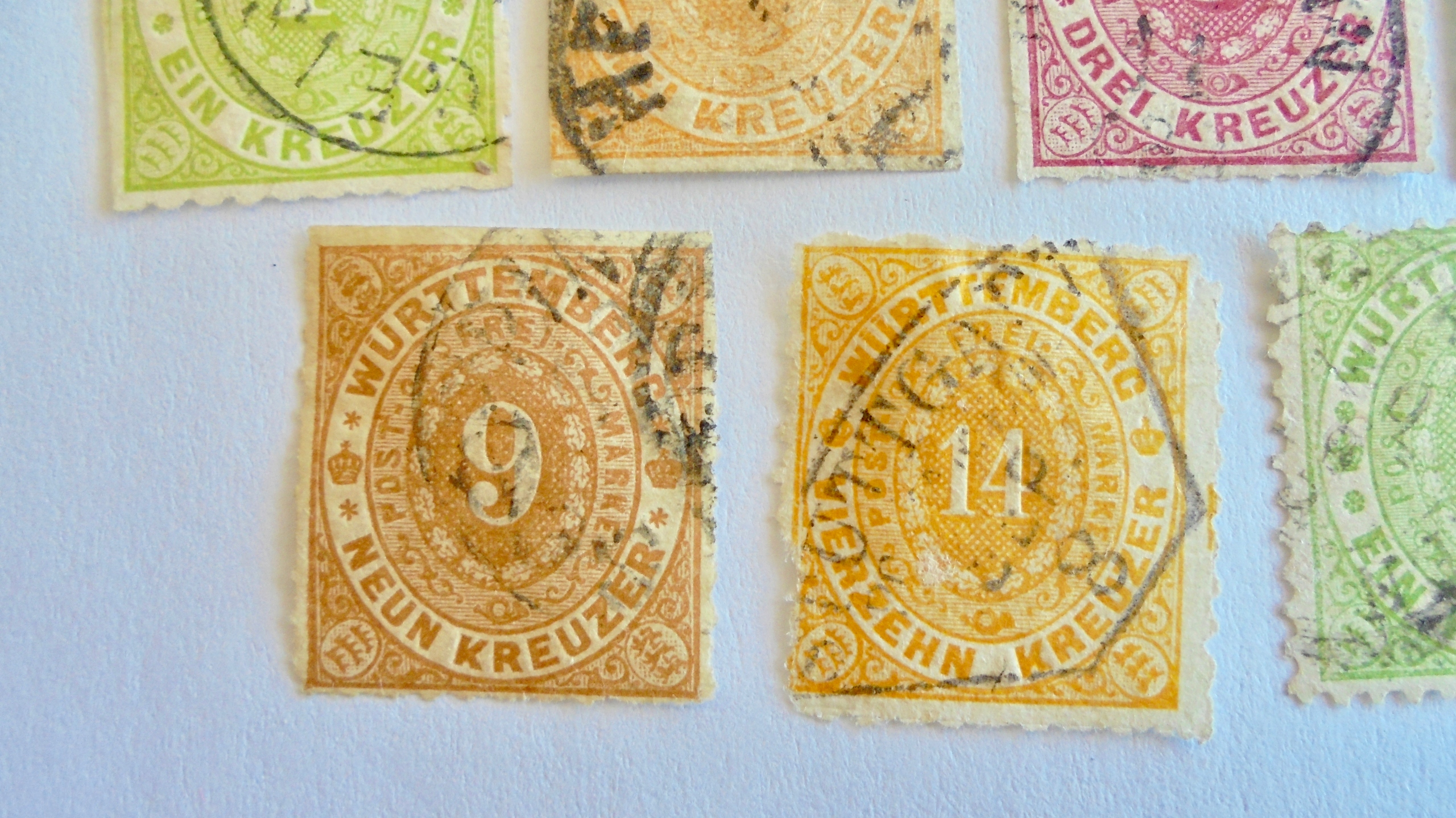 1869 Wurttemberg Mi.36-41 i 43 kasowane, stan dobry, wartość 380,- Euro