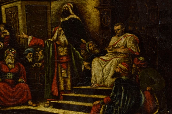 1883 Старая живопись «Христос перед пилатом» нефть, подписана и датирована.