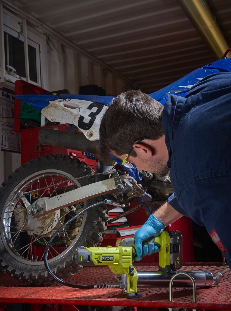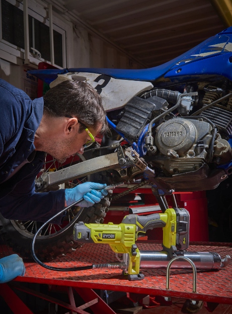 смазка батареи ryobi r18gg-0 b> идеально подходит для смазки транспортных средств и машин. Он обеспечивает смазку со скоростью 210 г/мин и максимальное давление до 690 бар для быстрой и легкой смазки. Его можно питать картриджи 400 г или заполнен свободной смазкой до 450 г . 76 см длина сопло прикреплено к инструменту, благодаря которому оно защищает устройство от пыли и грязи. блокировка коммутатора предотвращает случайное переключение на устройство. Вентиляционный клапан облегчает освобождение захваченного воздуха.