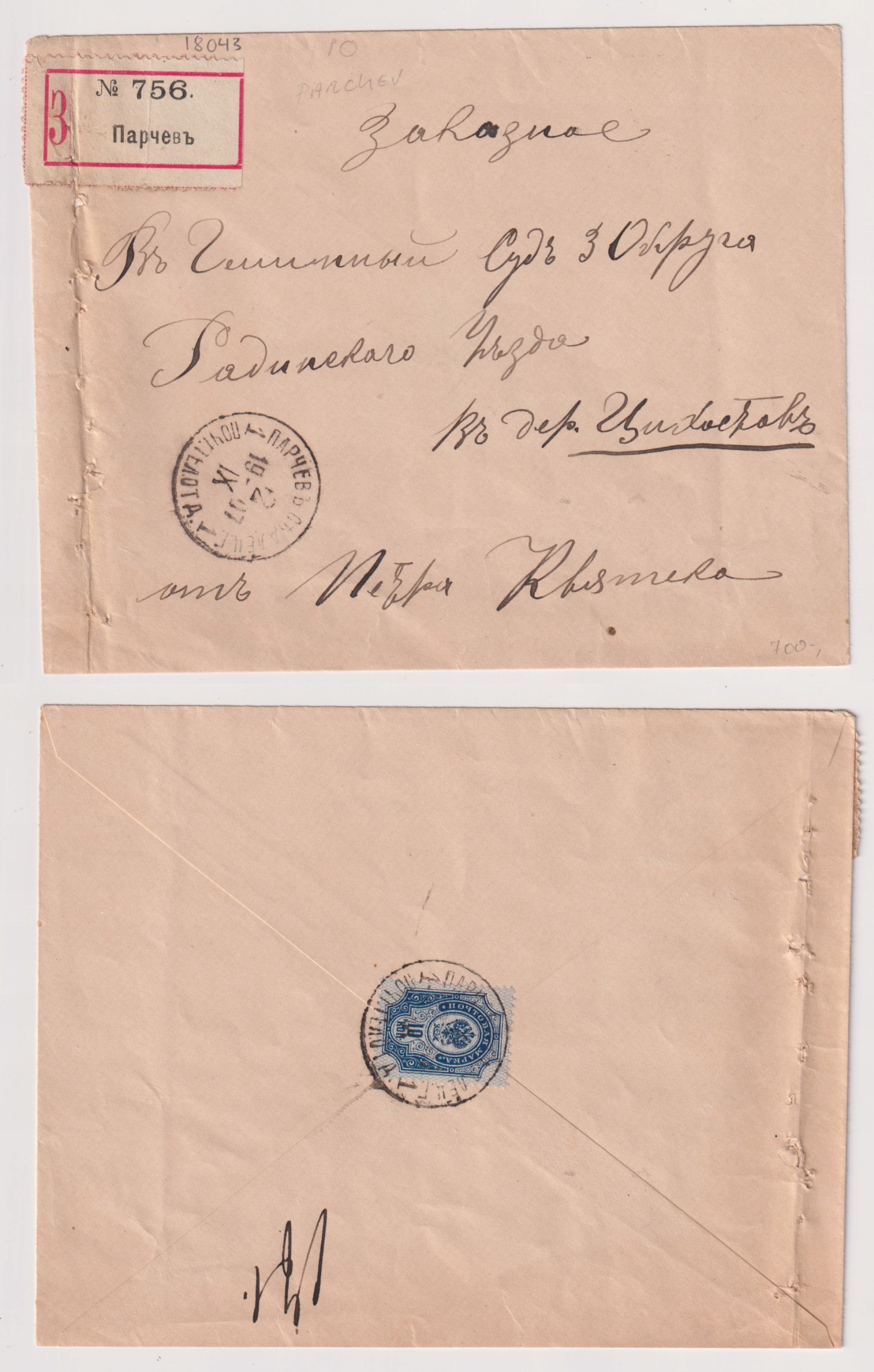 1907 Parczew Зарегистрированное письмо