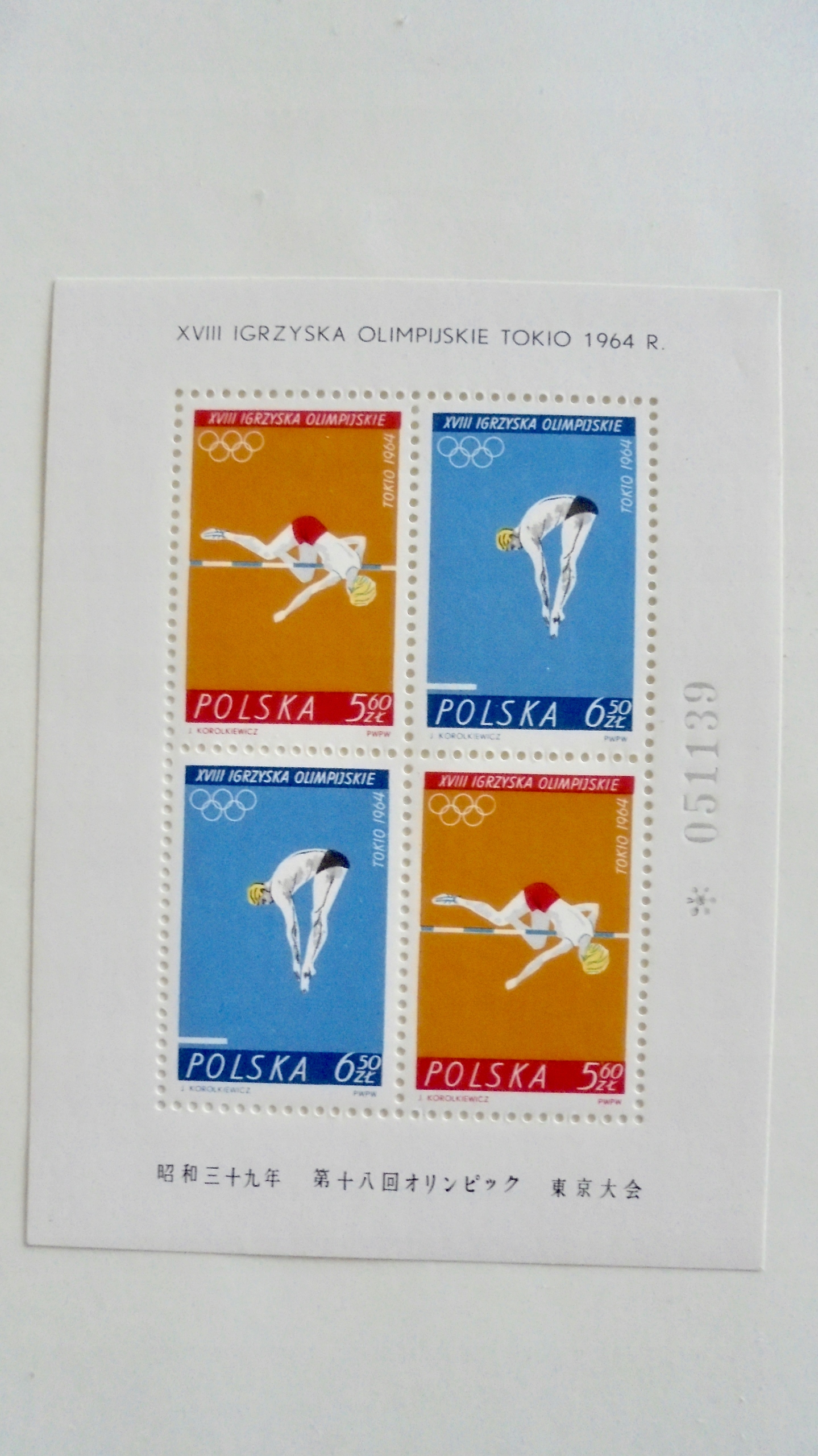 1964 Polska-Tokio blok 42** czysty z pełną gumą, stan bardzo dobry