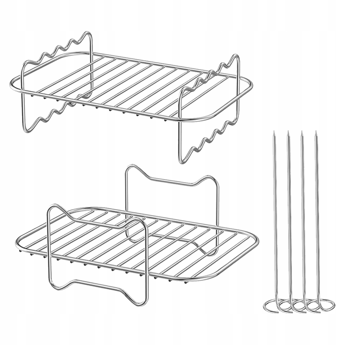 Набор из 6 элементов с 2 паровочными решетками из нержавеющей стали и 4 шашлыками из нержавеющей стали. Идеально совместим с Ninja Foodi 7.6L AF300EU, 9,5 л AF400EU, принцесса 182074, Innsky 8L, Emerio AF-126672, мгновенный горшок 7,6 л, N8Werk, Maxxmee и все воздушные фремеры с двойной камерой с способностью 7,6 л-9,5 л. Перед покупкой измерьте размер вашего воздушного фритюрнина.