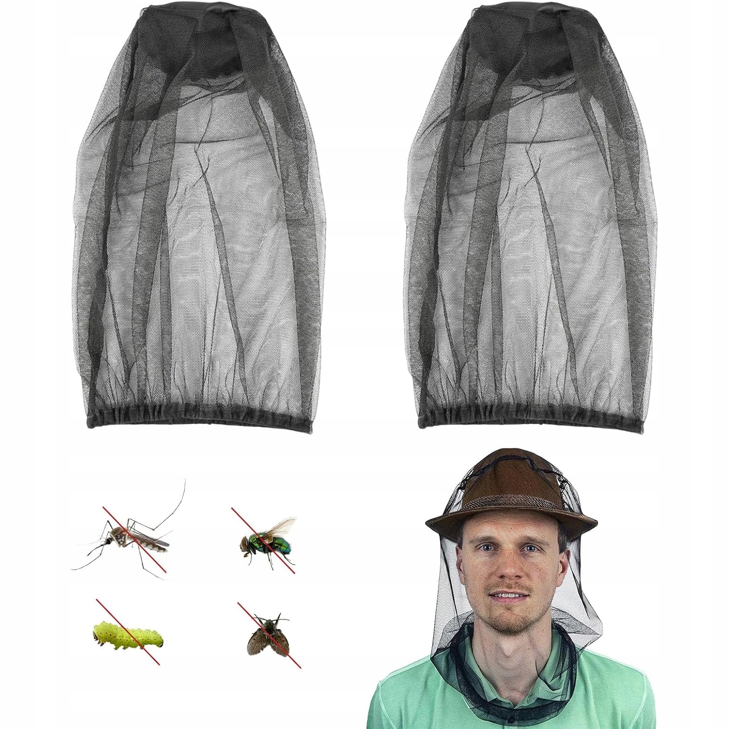 2x комаров сеть на шляпных комарах, чистых насекомых насекомых