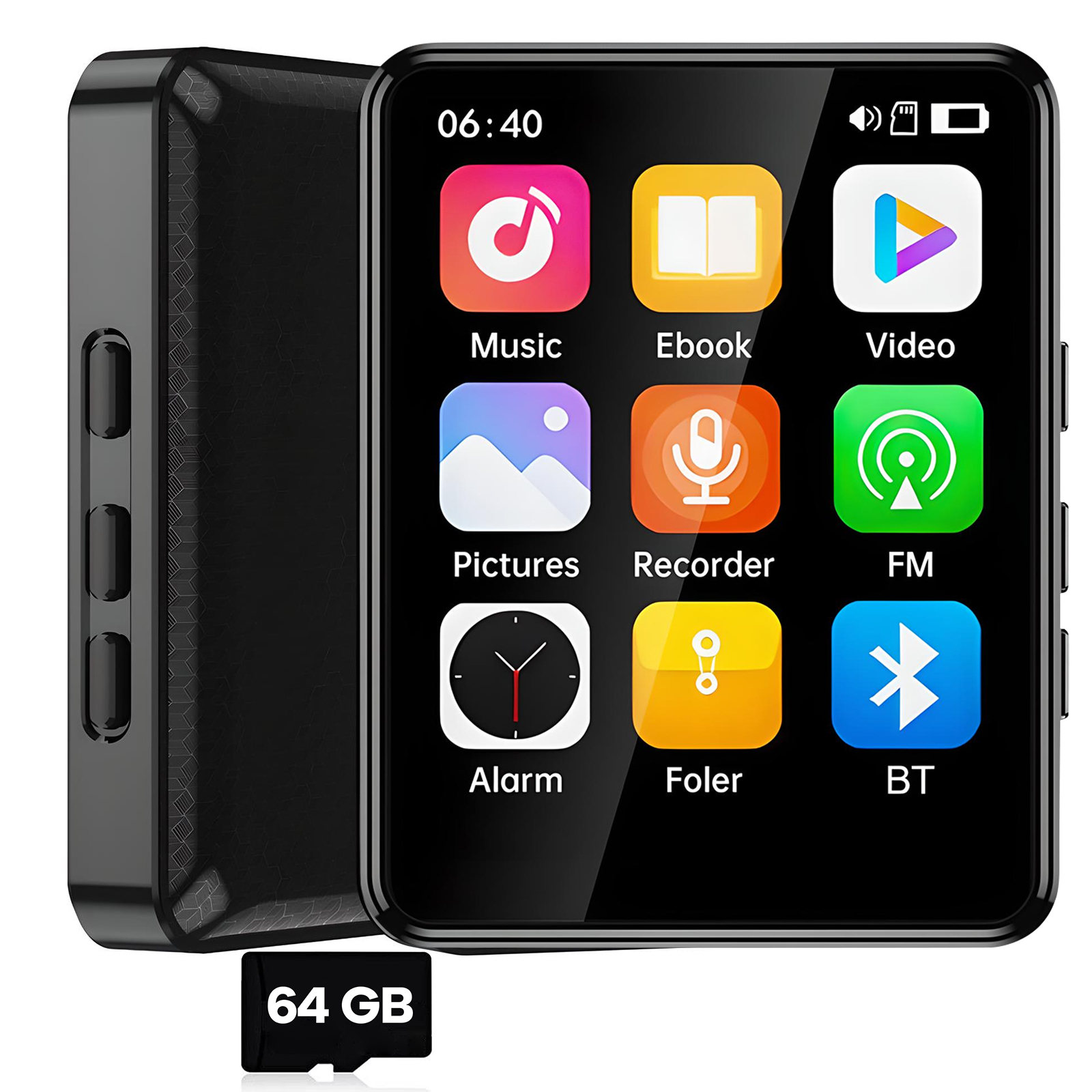 🎵 2,4 "MP3/MP4 Player с Bluetooth, FM -радио и динамик - 64 ГБ, сенсорный экран