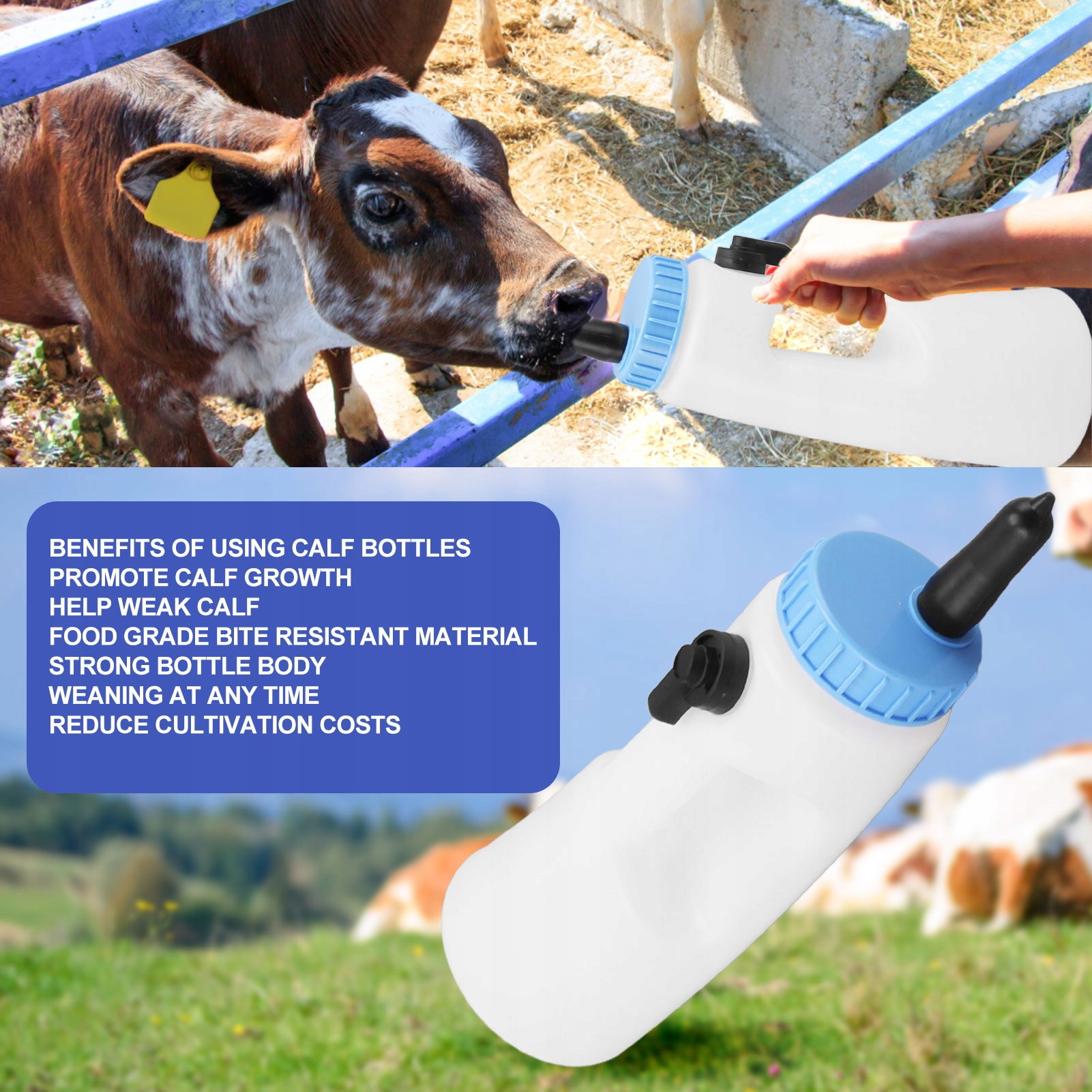 Функция: 1. Материал PE: бутылка для молока для телят изготовлена из пищевого соски, материала PE, долговечного, крышки, хорошо герметичной и не простой для утечки