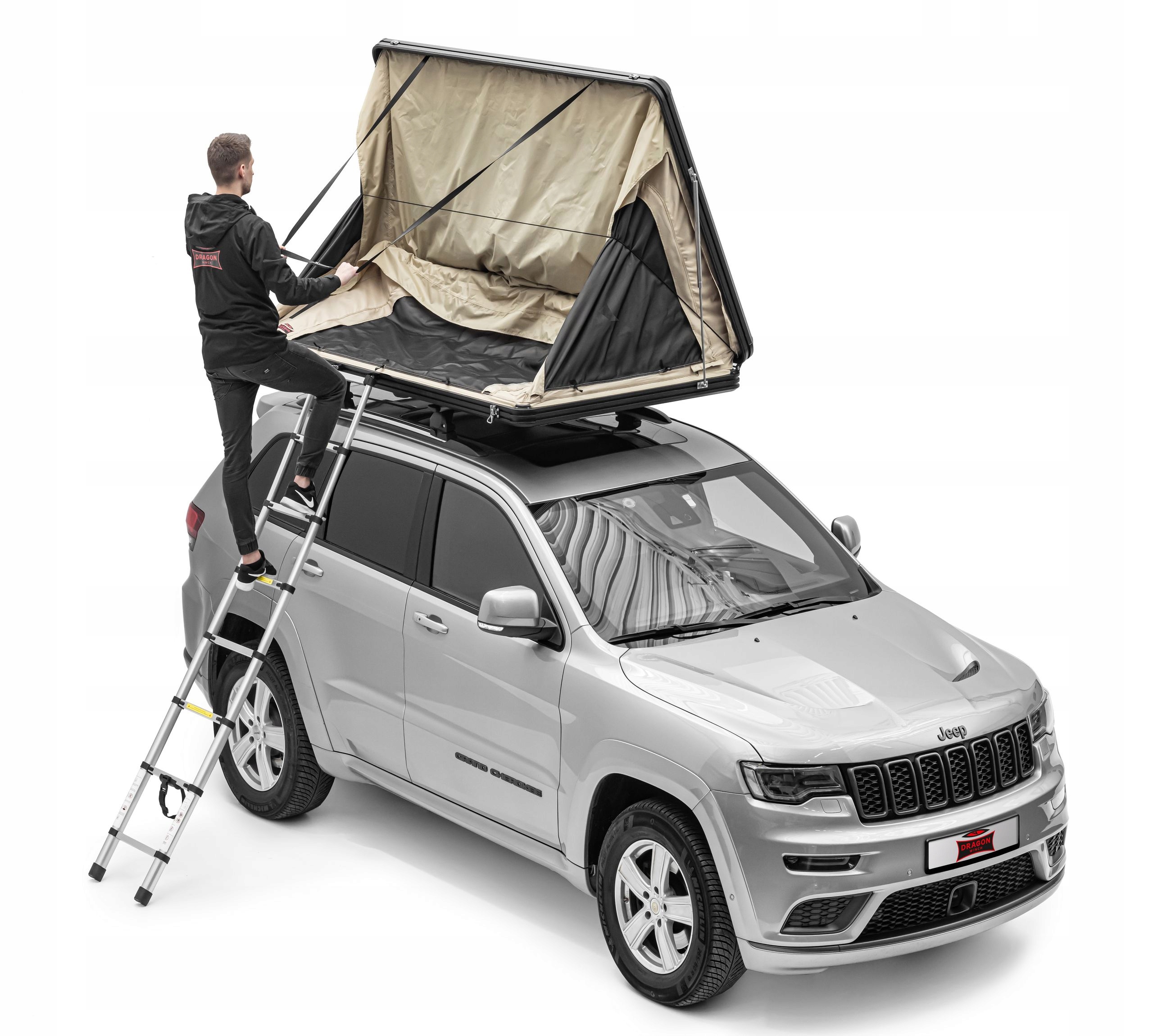 Двухместная палатка на крышу автомобиля Dragon Winch | Алюминиевая конструкция с матрасом, телескопической лестницей, карманами для аксессуаров и москитной сеткой | водонепроницаемость