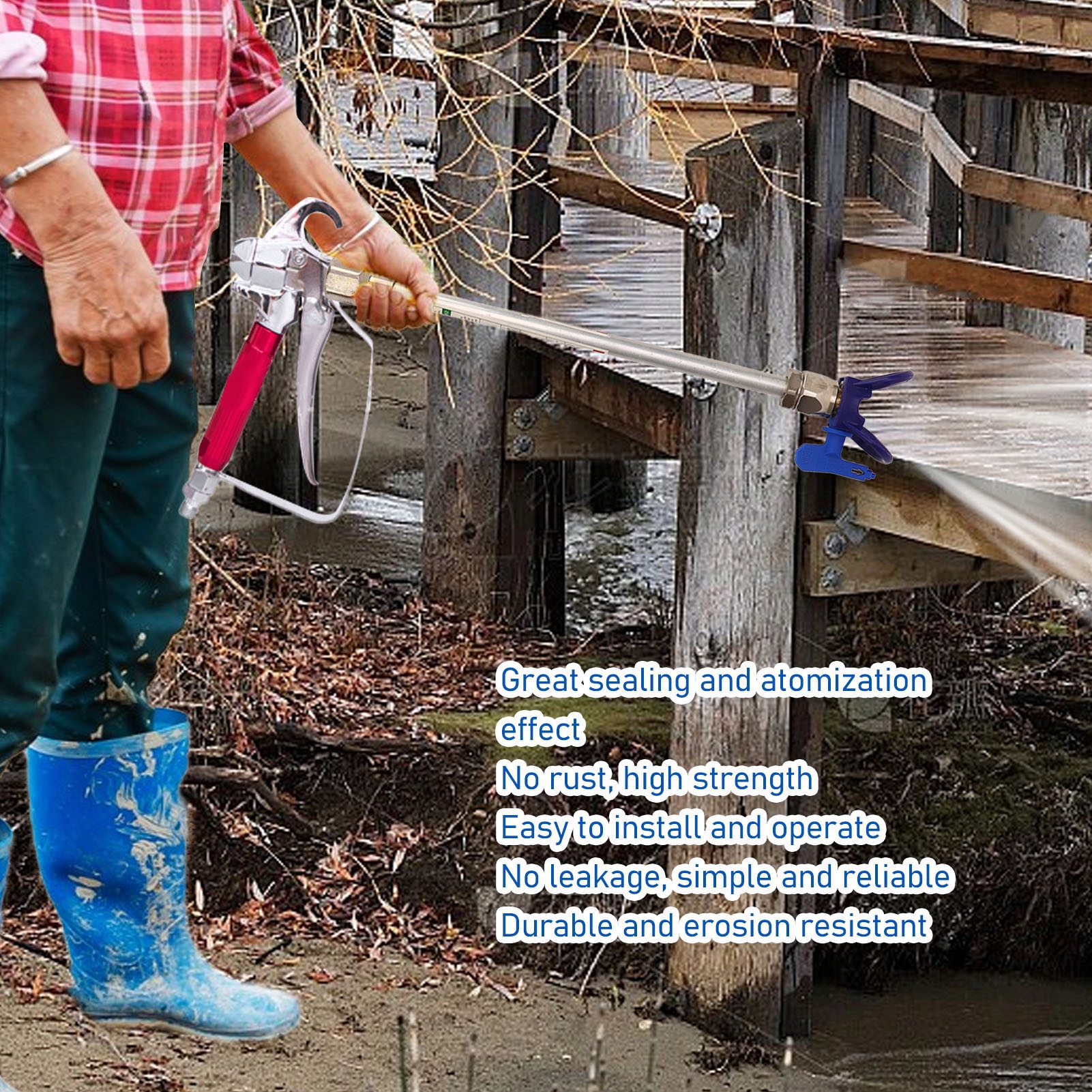 1. Материал из нержавеющей стали: двойной разъем изготовлен из нержавеющей стали, а крышка сопла изготовлена из соединения из нержавеющей стали и пластика, что обеспечивает длительную долговечность. Отличное изготовление: поверхность удлинительного стержня покрыта антиоксидантным слоем, обеспечивая жесткую и жесткую изгибную текстуру. Это легкое и очень устойчивое к эрозии. Совместимость: крышка наконечника совместима с опрыскивателями с подключением к резьбе G7/8-14, подходящим для форсунок с диаметром 11,42 мм/0,45 дюйма и расстояния между агентами 10,5 мм/0,41 дюйма. Легкая установка: удлинитель и аксессуары для распыления легко установить и разобрать. Перед очисткой или разборкой выпустите давление. Широкие применения: его можно широко использоваться в различных областях, в том числе в строительстве, покрытия внешних и внутренних стен, ремонт мостов, защита от коррозии конструкции и техническое обслуживание железнодорожных двигателей