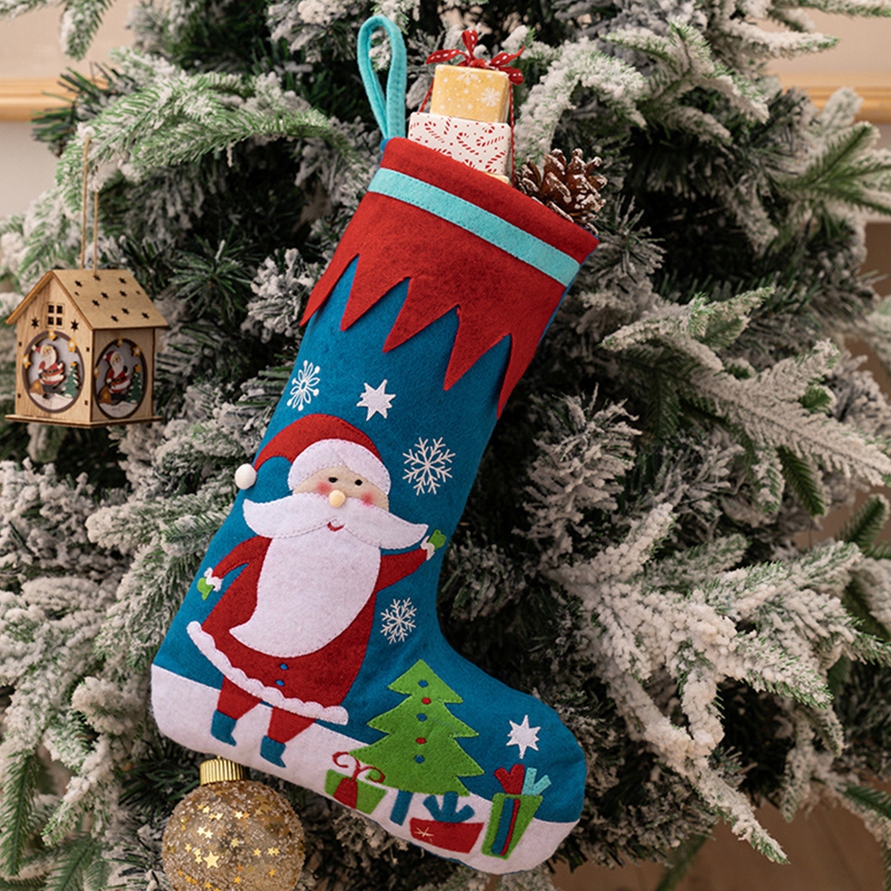 Это милое рождественское украшение для чулок. Его материал удобен, долговечен и приятен для кожи. Рождественский чулок прочный и долговечный, его можно использовать повторно. Классический дизайн рождественских элементов делает его идеальным для рождественских украшений.