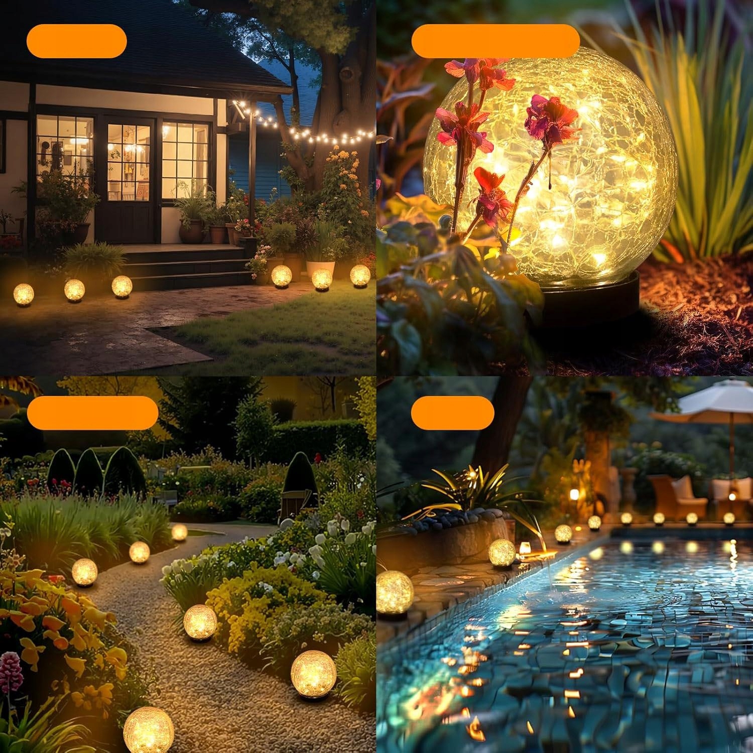 🌞【 Солнечный рывок для сада. Когда наступает ночь, треснутая хрустальная лампа выглядит как снежный ком, наполненный красивыми снежинками. ❄