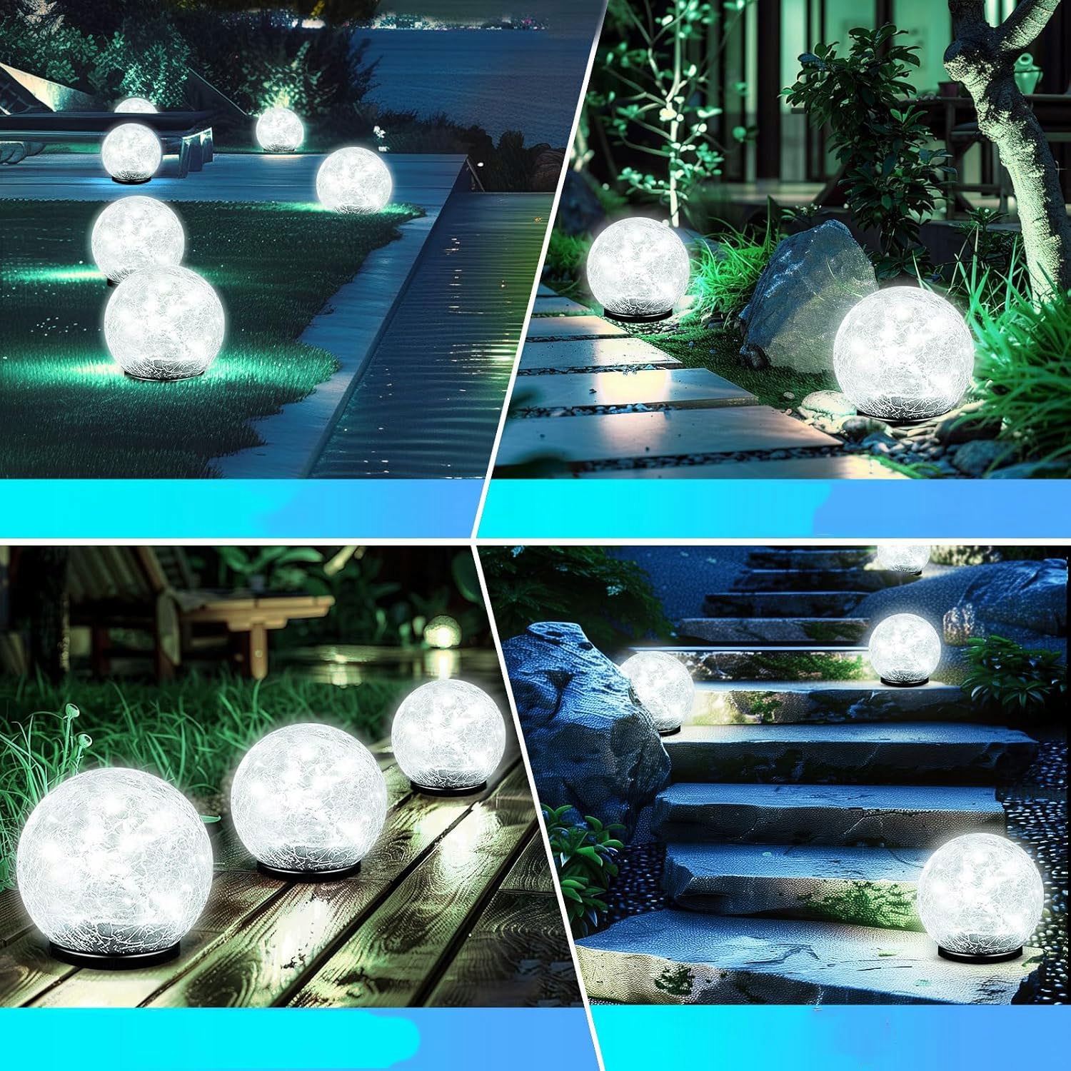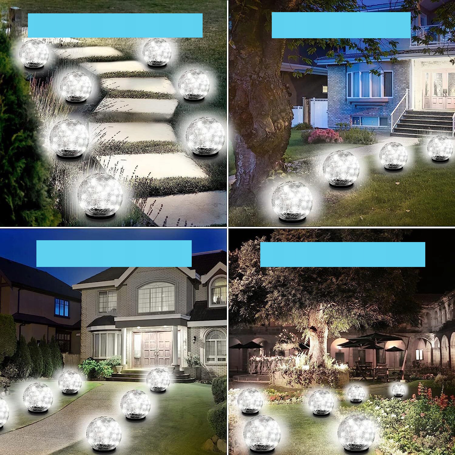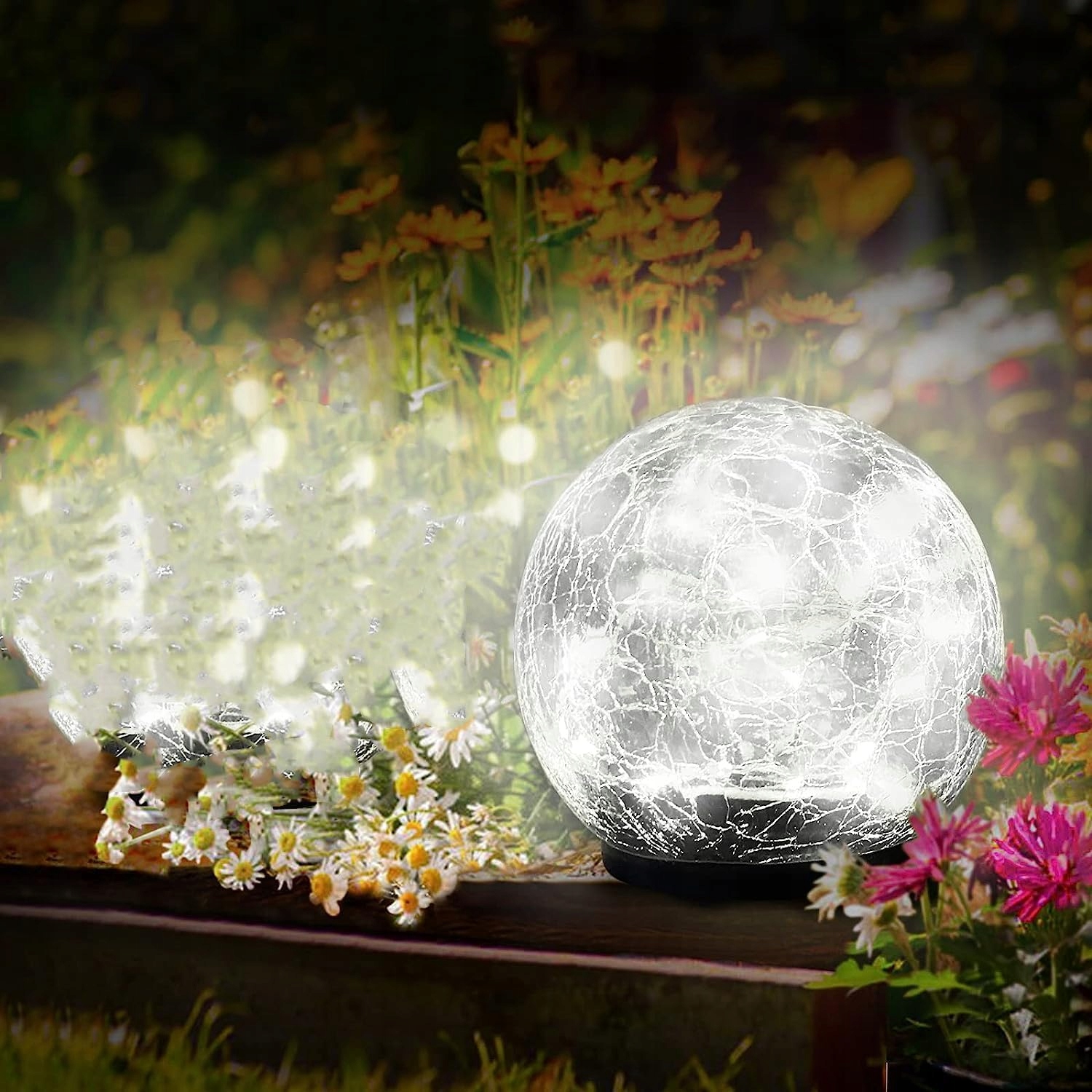 ☀ солнечный торшер для сада: солнечный светодиодный торшер со стеклянным шаром имеет трещины в отделке поверхности. Когда наступает ночь, треснутая хрустальная лампа выглядит как снежный ком, наполненный красивыми снежинками.
