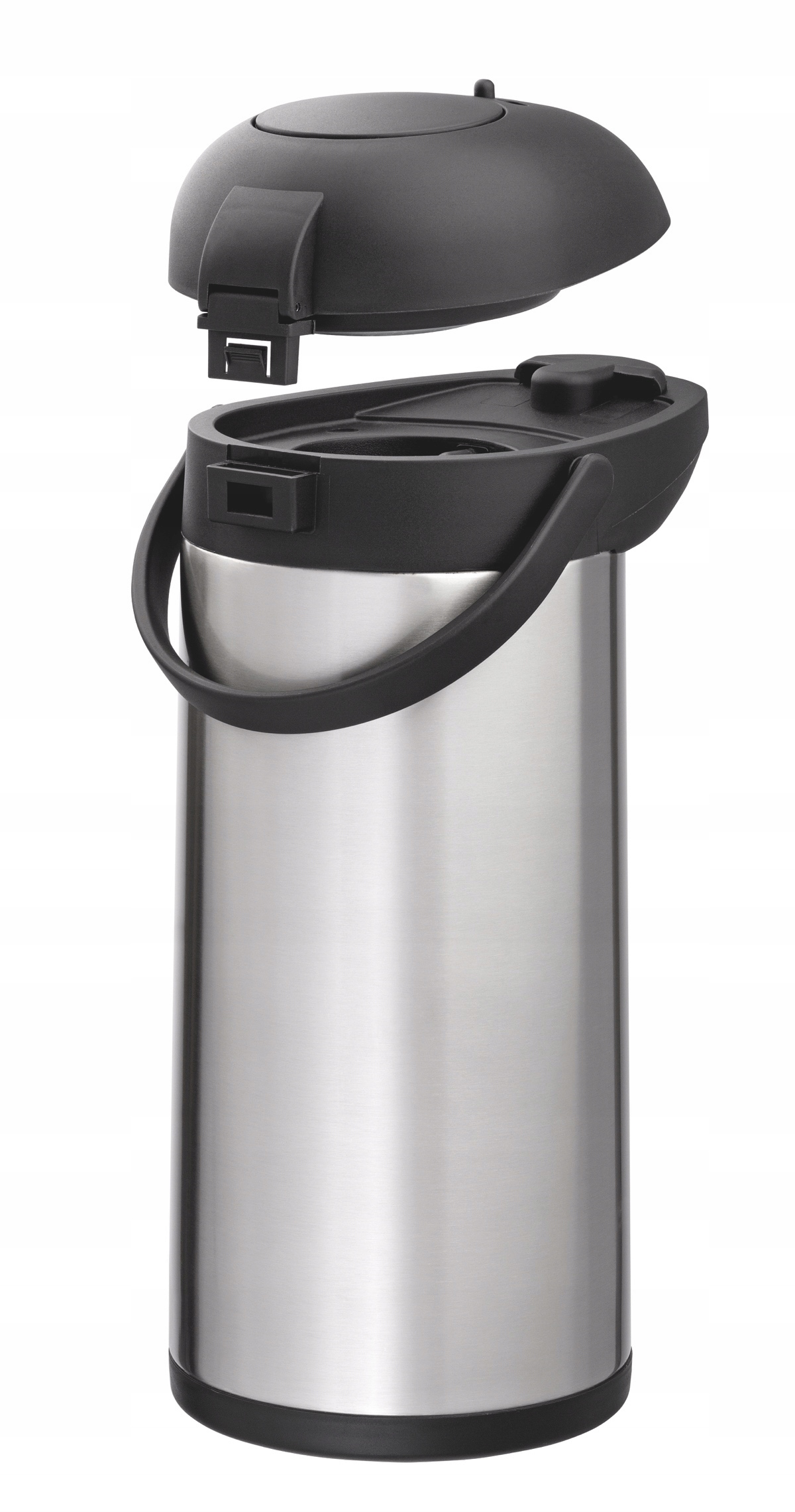 Благодаря двойным стенкам можно долгое время поддерживать соответствующую температуру подаваемых напитков (как горячих, так и холодных). В крышке имеется кнопка-помпа, позволяющая удобно дозировать.