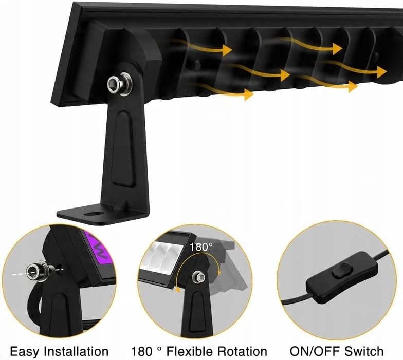 - Безопасный черный UVA Light: длина волны черного света - это 385 - 400 нм (класс UVA), безопасно для глаз и человеческого тела. Подходит для Рождества, Хэллоуина, в клуб, на вечеринку, аквариум, для выставки, дня рождения, домашнего кино и т. Д. Черный свет подходит для использования внутри и снаружи, что также защищает фару от влаги и пыли. ПРИМЕЧАНИЕ. Переключатель не является водонепроницаемой