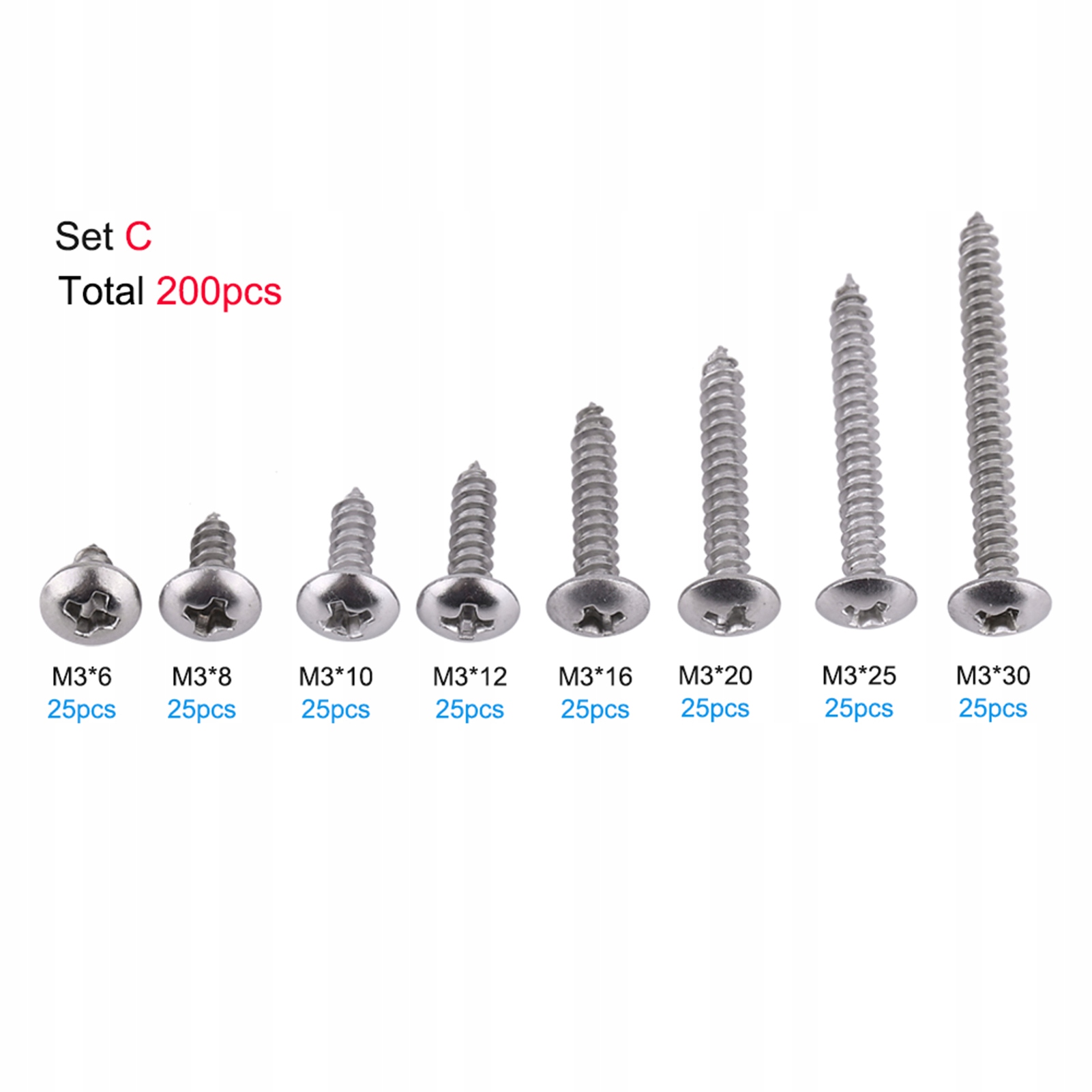200 кусочков самостоятельных винтов M3 из нержавеющей стали SS304.