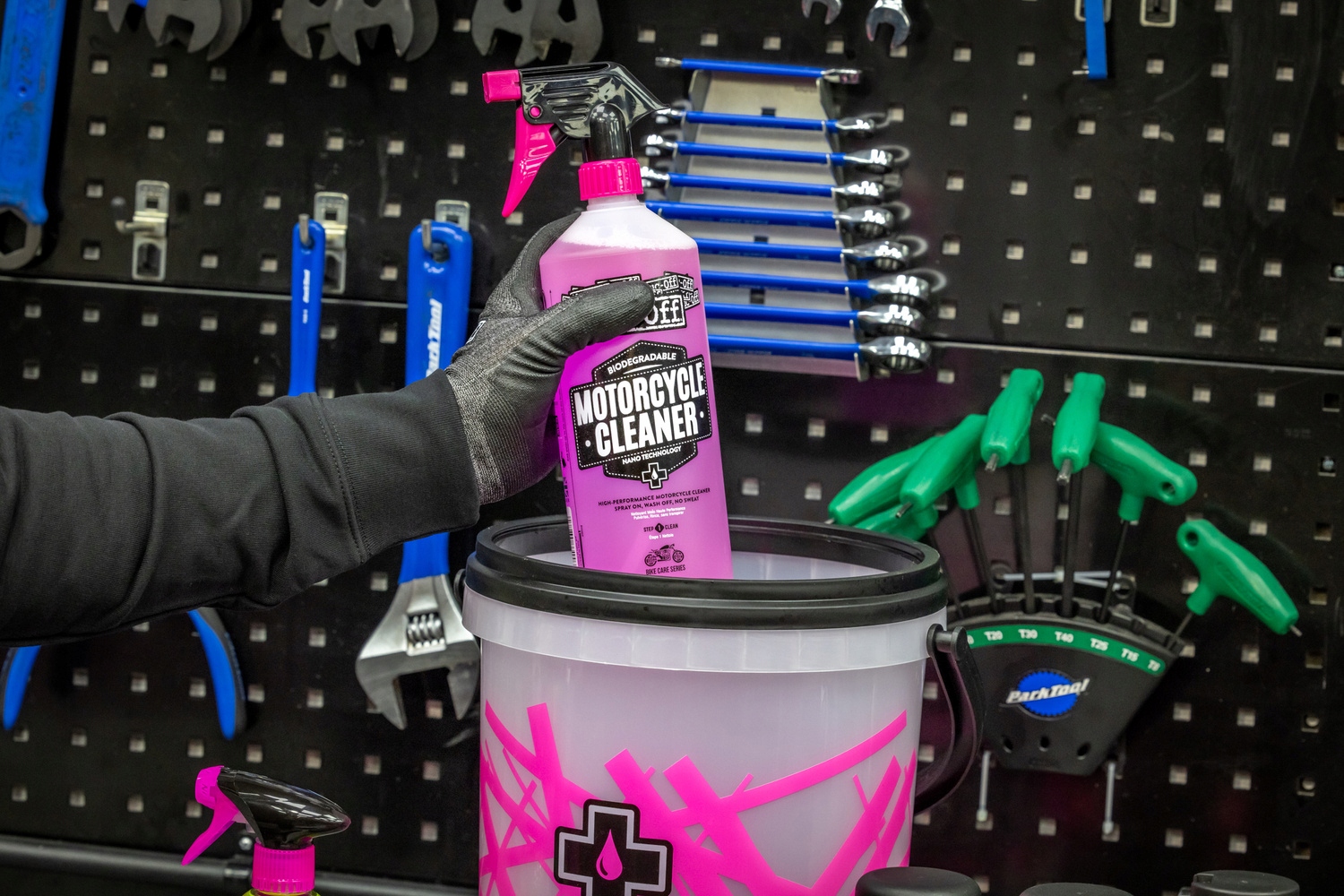 Комплект Muc-Off Powersports — лучший способ освежить ваш мотоцикл. Это идеальный набор, который поможет поддерживать вашу краску в идеальном состоянии. В нижней части ведра расположен инновационный фильтр, который предотвращает попадание грязи обратно на губку при ее ополаскивании. Мы дополнили набор удивительным ассортиментом продуктов Muc-Off. В комплект входит все необходимое. От чистящих средств до смазочных материалов, щеток и защитных спреев.