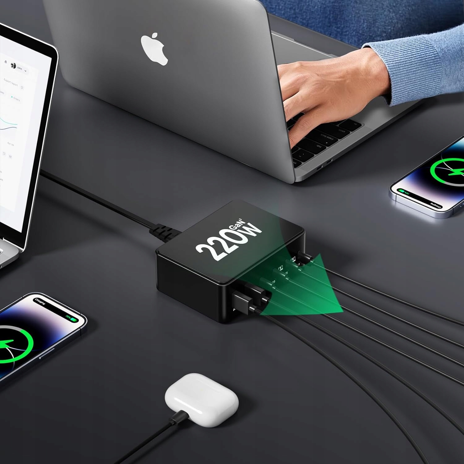 220 Вт USB C Зарядний пристрій 100 Вт 65 Вт PPS GaN PD із 4 USB-C і 2 USB-A