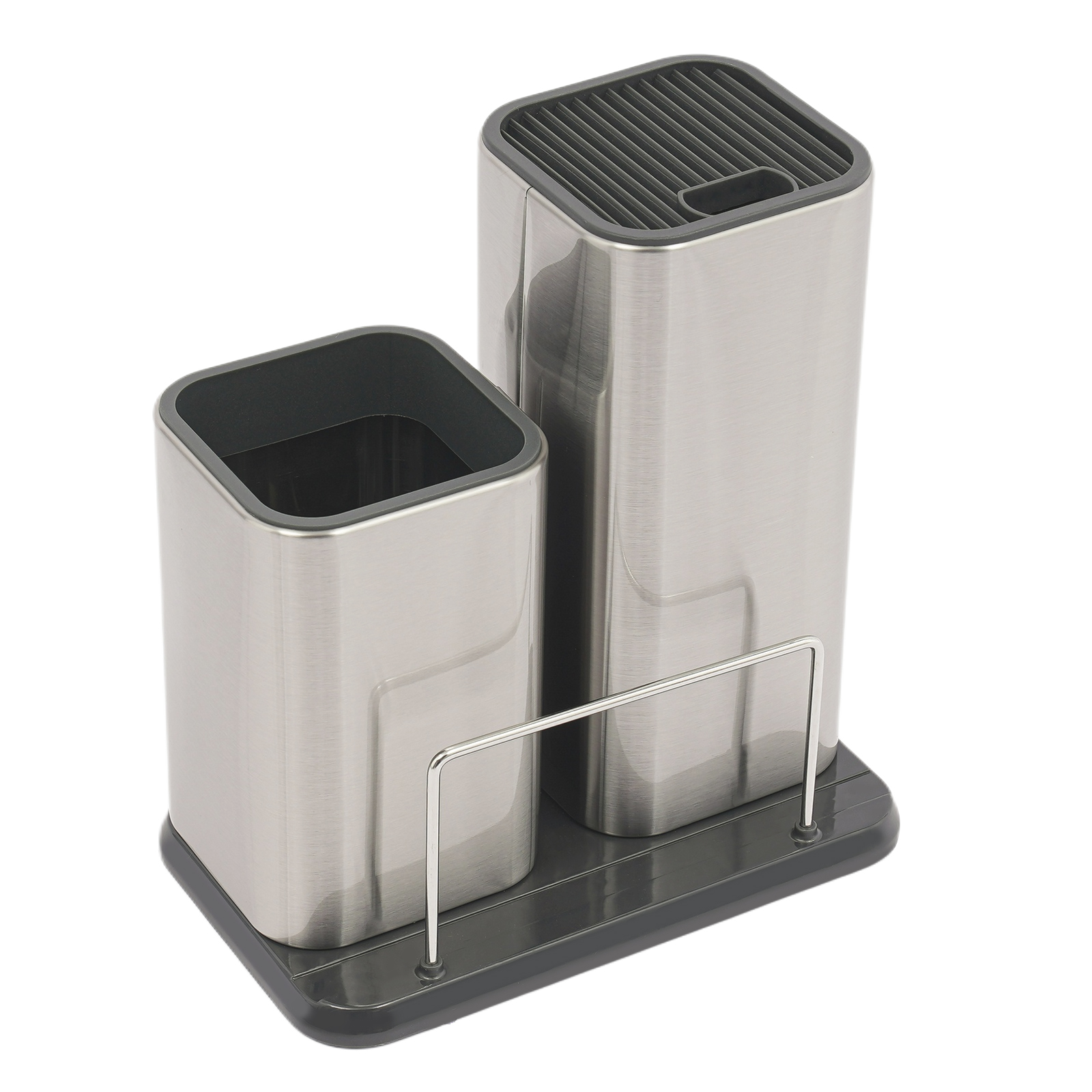 Идеальный компаньон для хранения: Улучшите организацию своей кухни благодаря нашему универсальному решению для хранения, включающему два ведра разного размера, которые обеспечивают много места для ножей, ножниц, лопаток, ситечек и других предметов первой необходимости. Продуманные большие отверстия обеспечивают легкий доступ к режущим инструментам, сохраняя вашу кухню стильной и свободной от беспорядка.