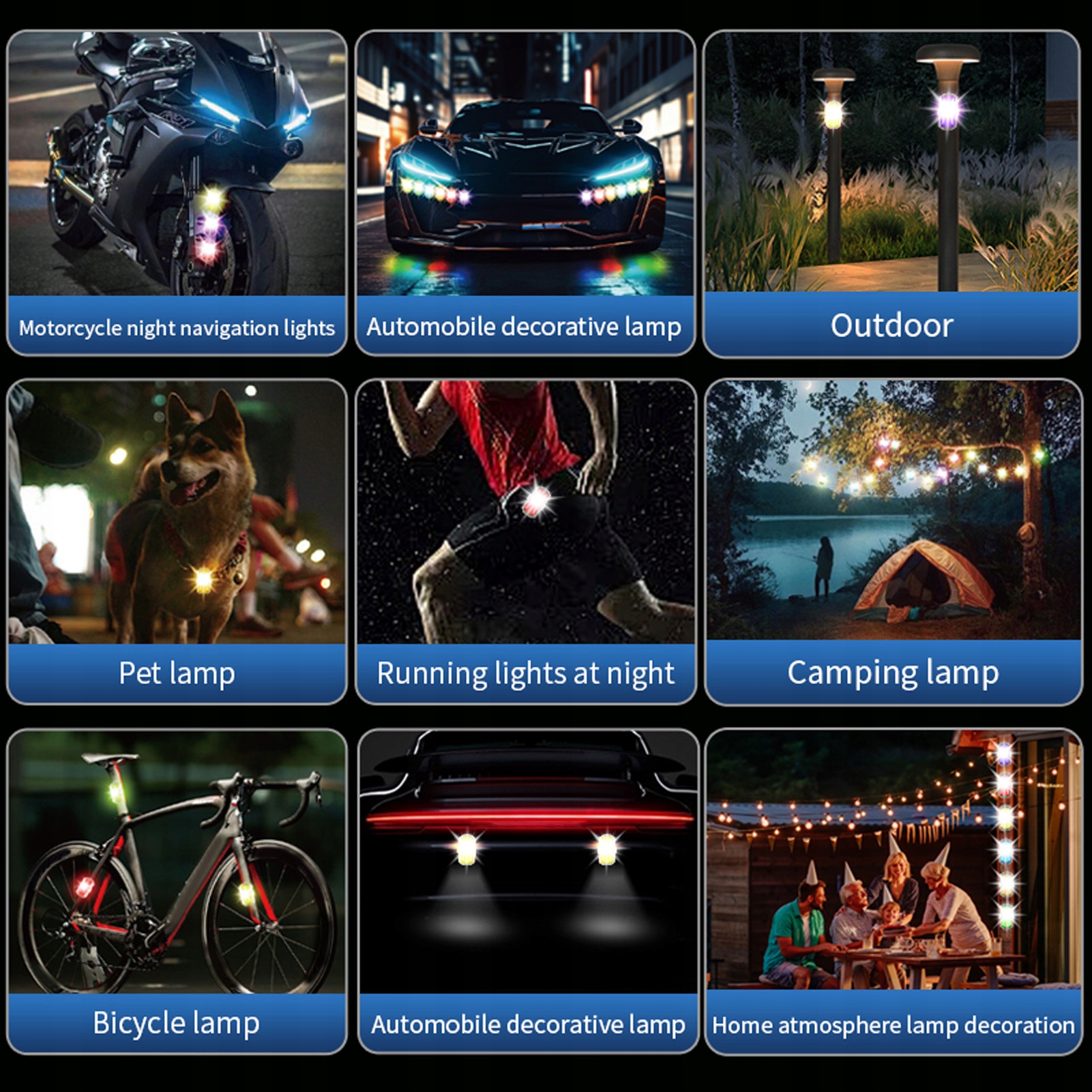 3. Универсальный цвет и режимы: выберите 7 ярких цветов, красный, зеленый, синий, желтый, синий, розовый и белый, и исследуйте 10 различных режимов, включая статические, быстрые мигание, дыхание, предупреждение и медленное мигание.