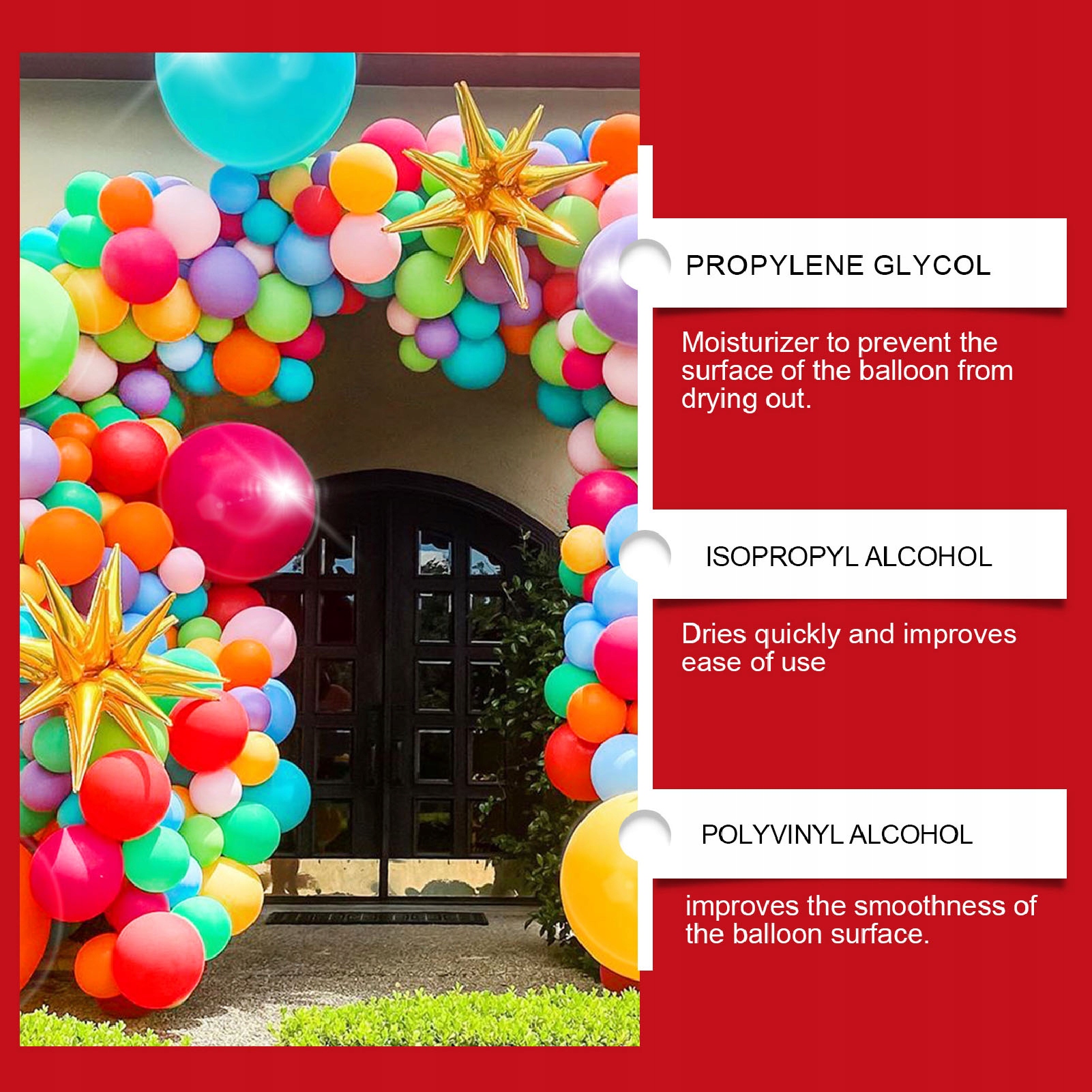 4. Легко съемный: Balloon Shine Spray не оставляет знак и может быть легко удален без влияния на оригинальный цвет воздушного шара. Процесс очистки прост и удобен, экономя время и энергию.