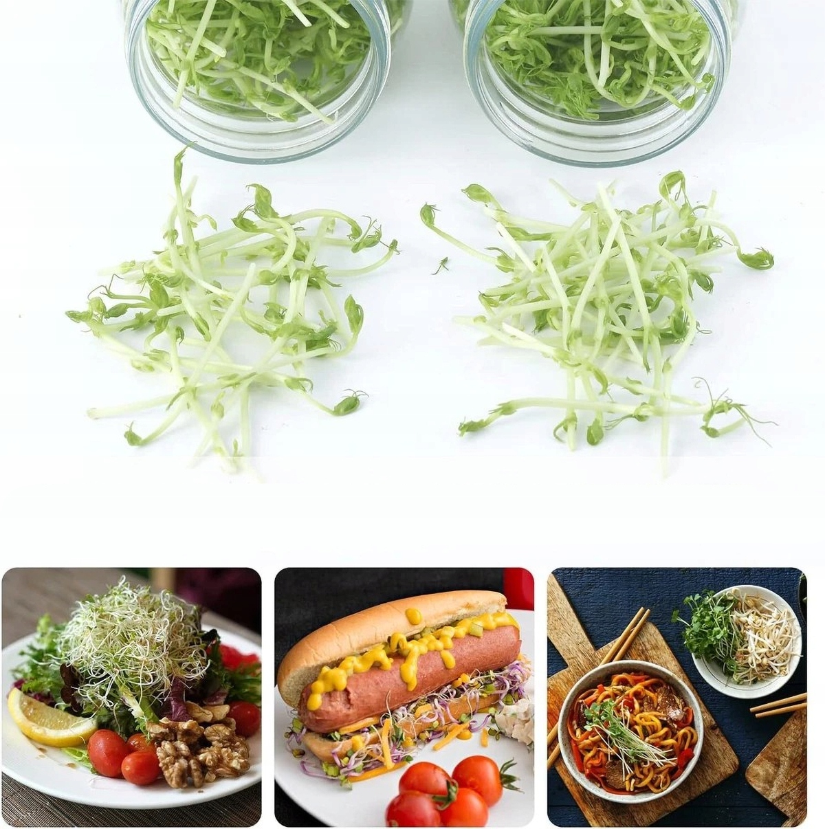 【Здоровье и веселье】 Седые ростки - это очень весело для всей семьи, и дети могут научиться есть собственную еду, веселившись, веселившись. Выращивание их собственных ростков и микроли в домашних условиях свежее и питательное! Карастки обеспечивают почти столько же хлорофилла, ферментов и питательных веществ, как и другие овощи. Это прорастание в банках - отличный подарок для семьи, друзей и коллег по случаю праздников и годовщины.