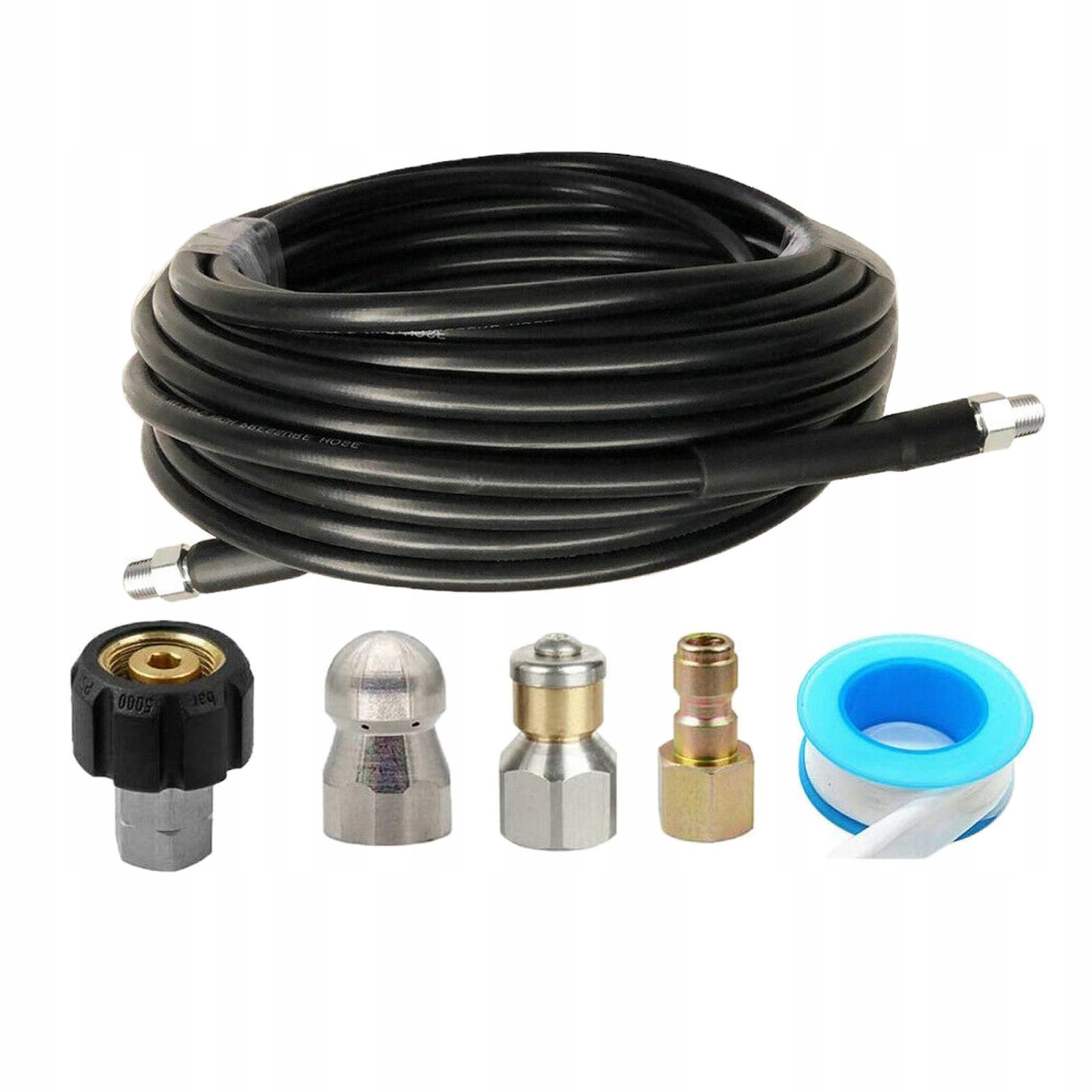 Профессиональный комплект для чистки канализации. В комплект для чистки канализации входят канализационный шланг длиной 49 футов, кнопочная канализационная насадка, поворотная канализационная струйная насадка, быстроразъемный соединитель 1/4 дюйма, фитинг (мама M22 на внутреннюю резьбу 14 мм NPT) и водонепроницаемая лента. Мойка высокого давления поможет вам прочистить засоры. Другие виды дренажного оборудования внутри и снаружи помещений в сочетании с мойкой высокого давления любой марки могут легко смыть засоры.